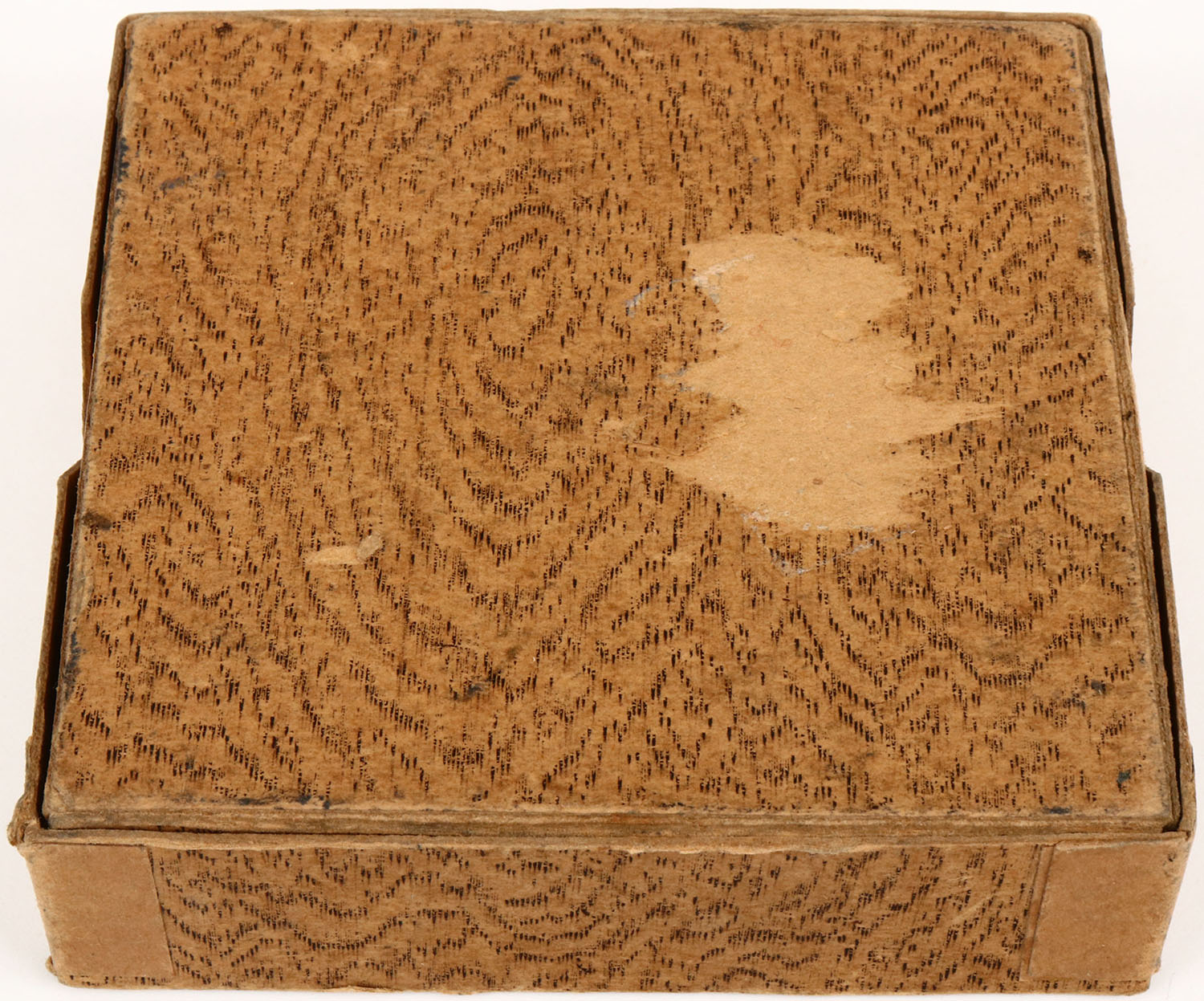 Follett Manufacture, Box contains 24 cylindrical paper containers with a brass end, Box also contains cork wads for under the concentrator, there are wads for use in front of the concentrator with four holes to catch the air and blow away. Grade: Excellent - Value: 10 to 50