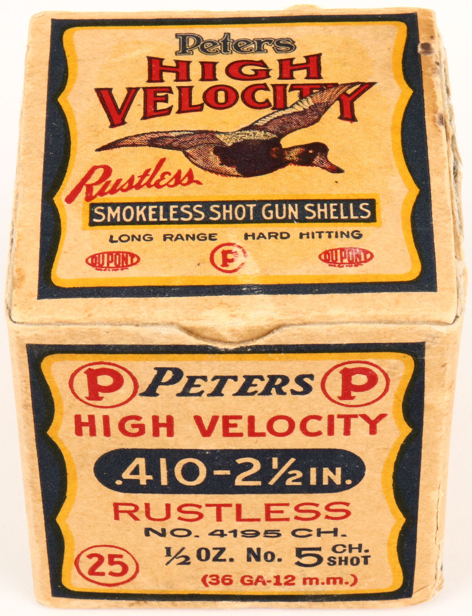 | Peters Cart. Co., Blue Bill box HIGH VELOCITY, Rustless, 410ga. ...