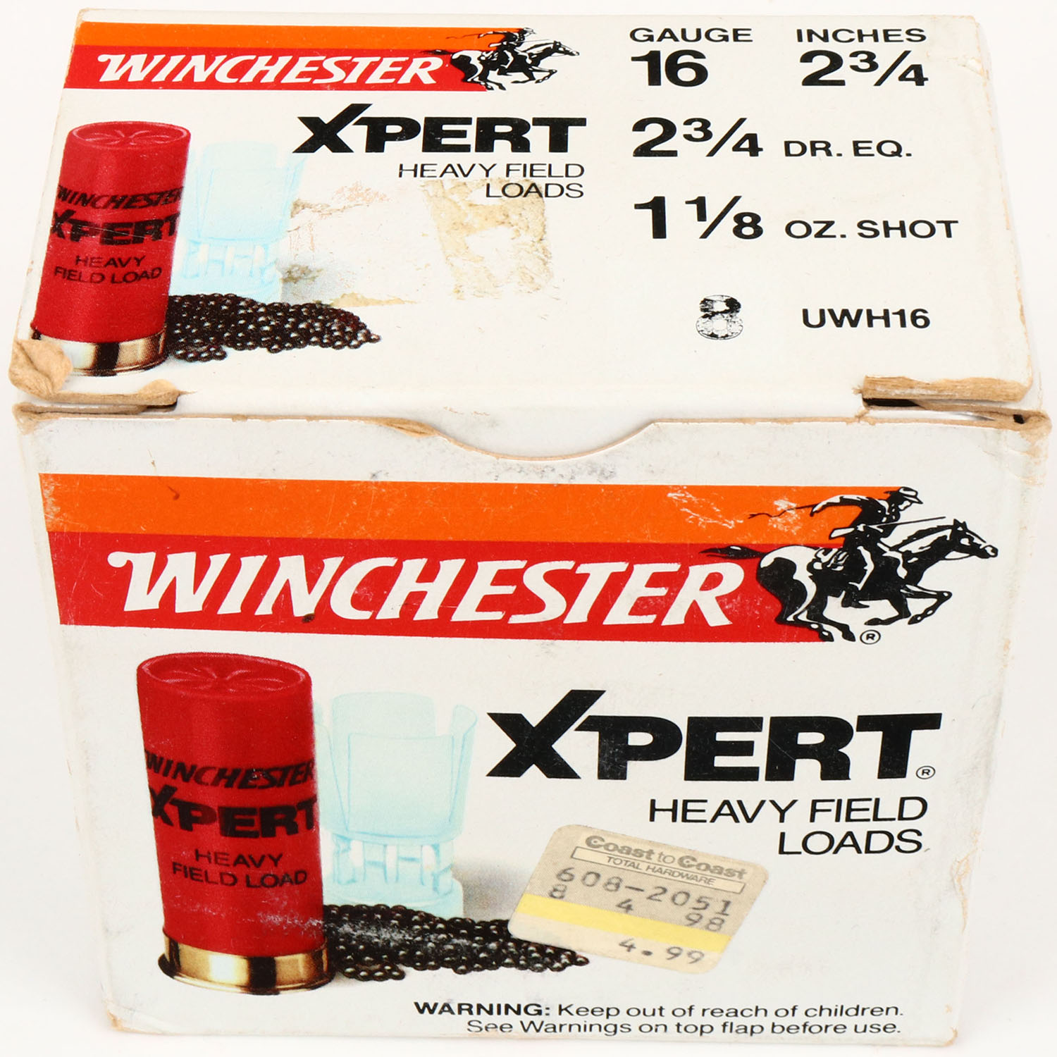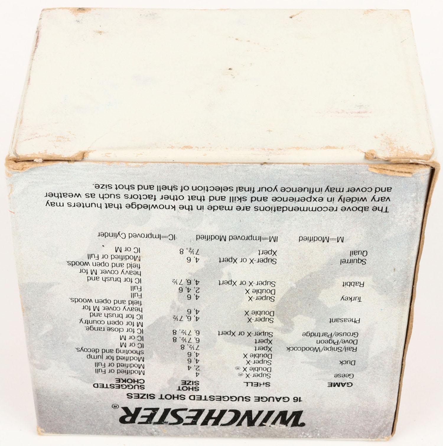Winchester, Xpert, 16ga., 1pc., Full, 2 3/4'', shot size 8, multi colored box, box has great colors, shells are excellent. Grade: Excellent + - Value: 10 to 30
