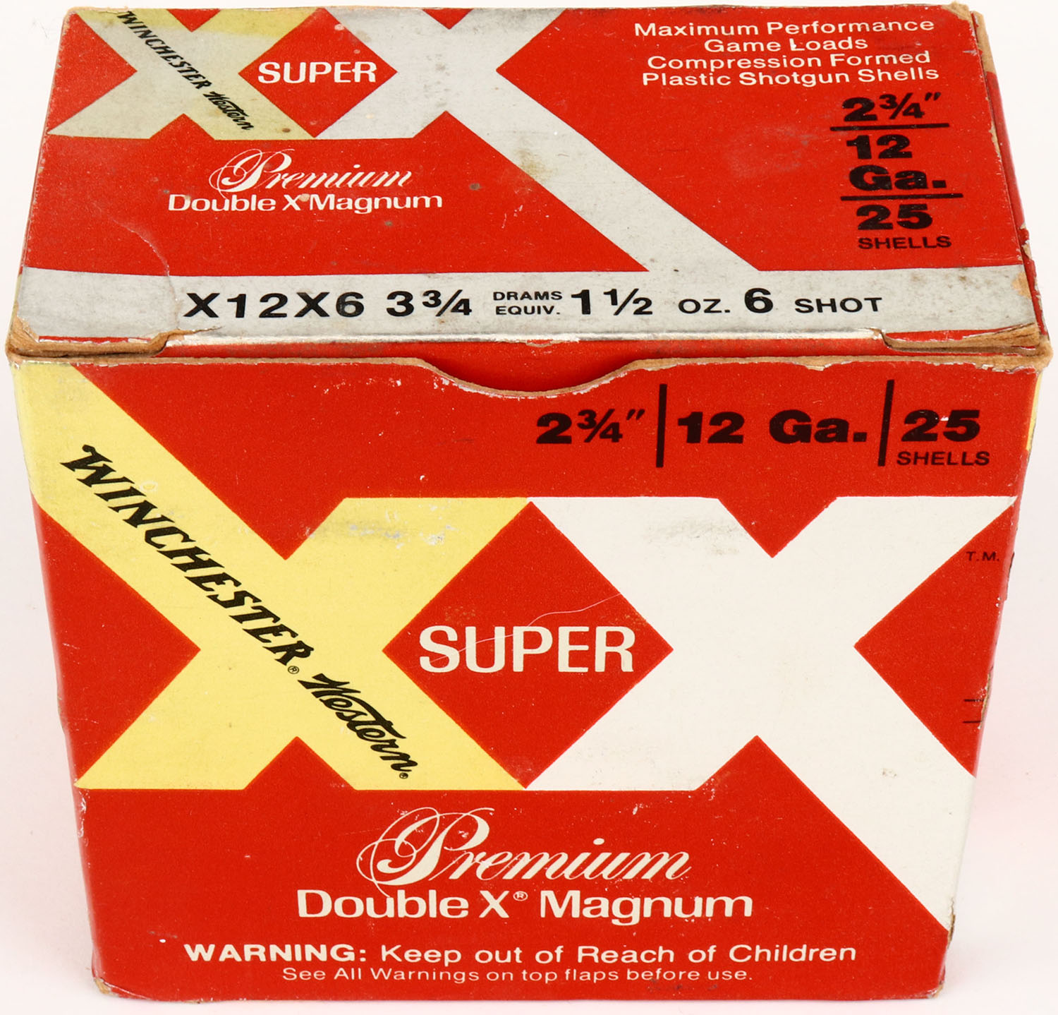 | Winchester, Super X, 12 ga., shot size 6, red, black, & white b...