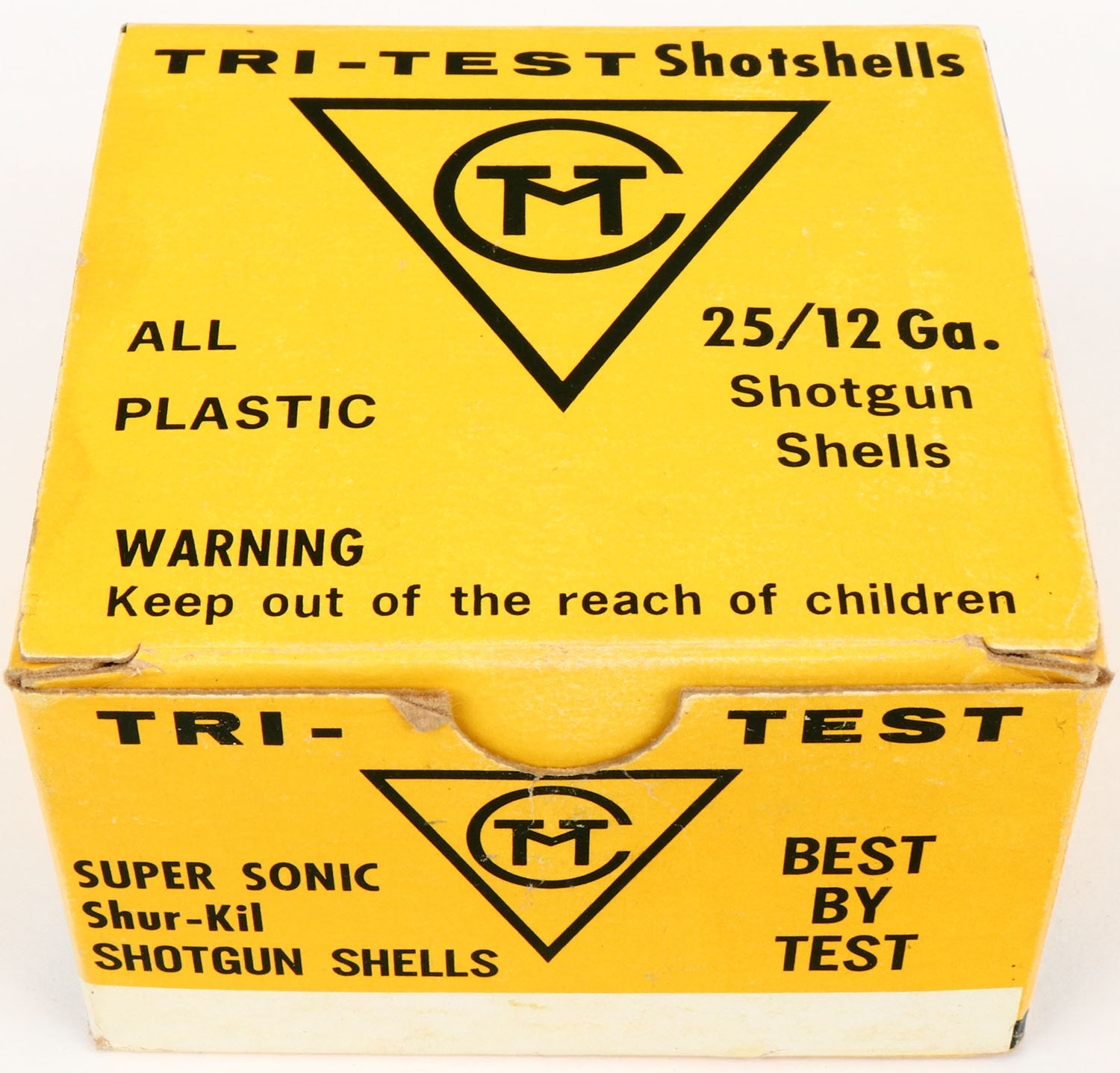 Tri-Test, 12ga., 1pc., FULL, shot size 4 Buckshot, box is solid, Shells are excellent. Grade: Excellent + - Value: 8 to 20