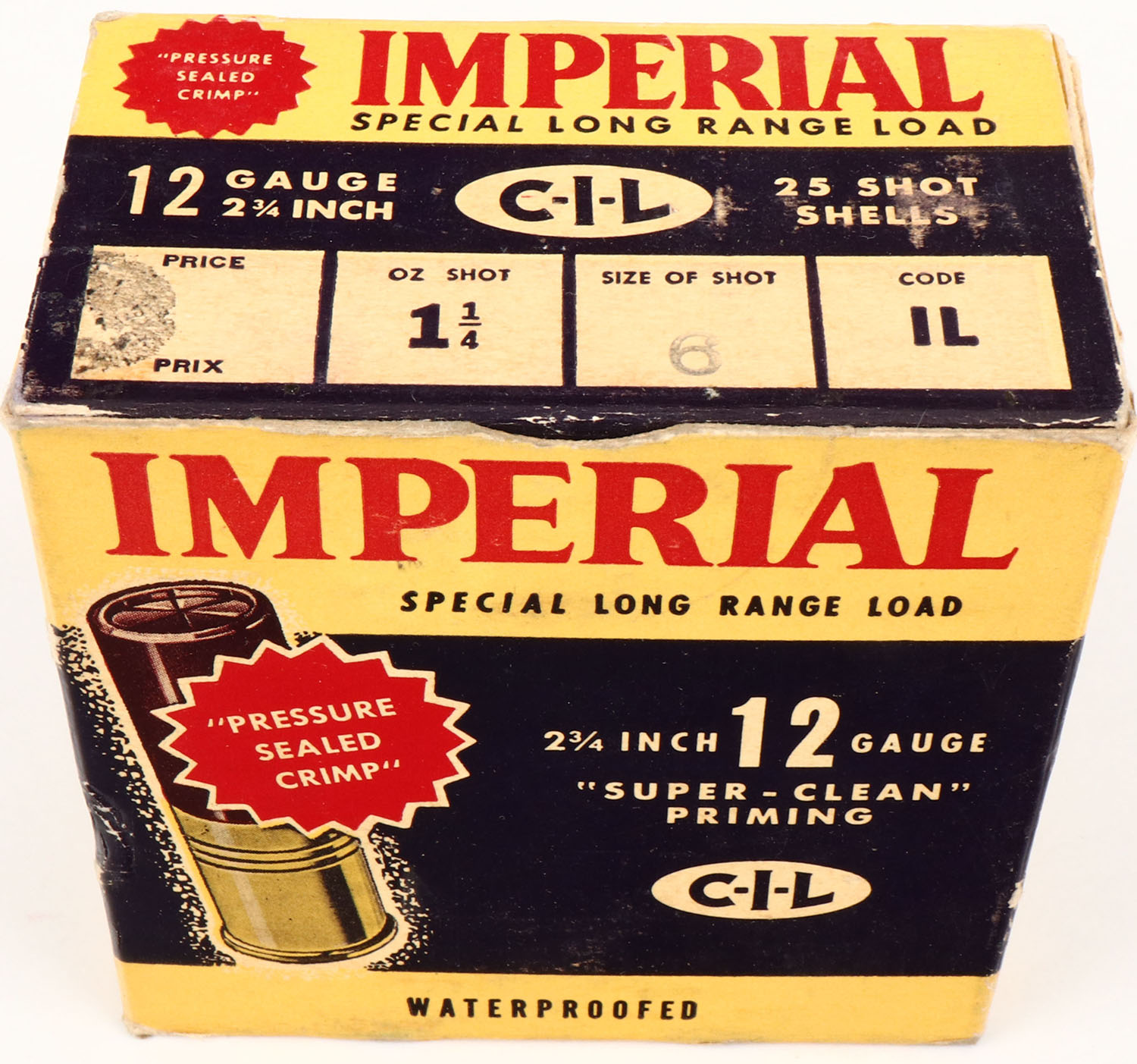 CIL, Imperial, 12ga., 1pc., FULL, shot size 6, box is solid, Shells are excellent. Grade: Excellent + - Value: 8 to 20