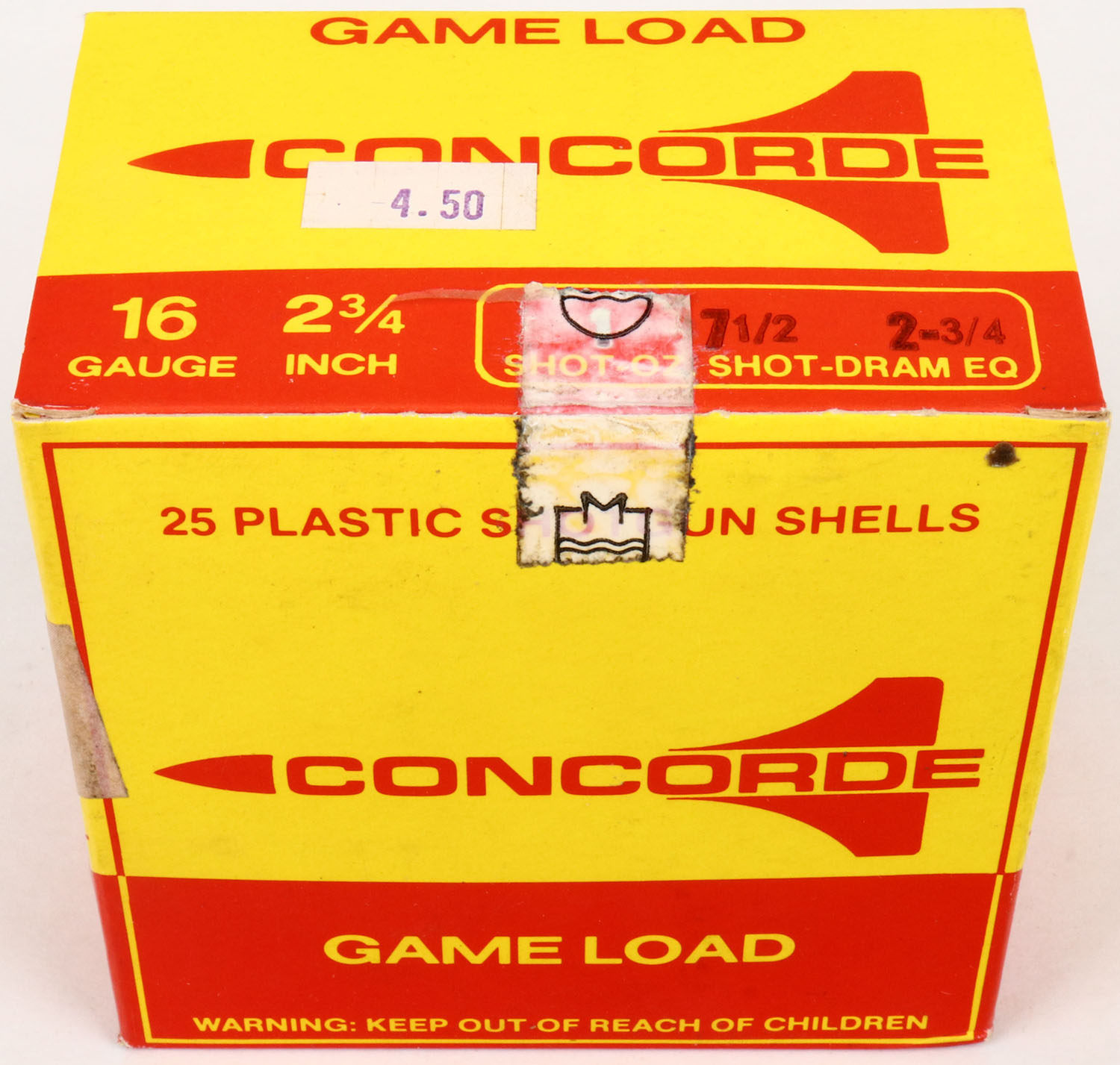 Concorde, Game Load, 16ga., 1pc., FULL, shot size 7 1/2, box is solid, Shells are excellent. Grade: Excellent + - Value: 8 to 20