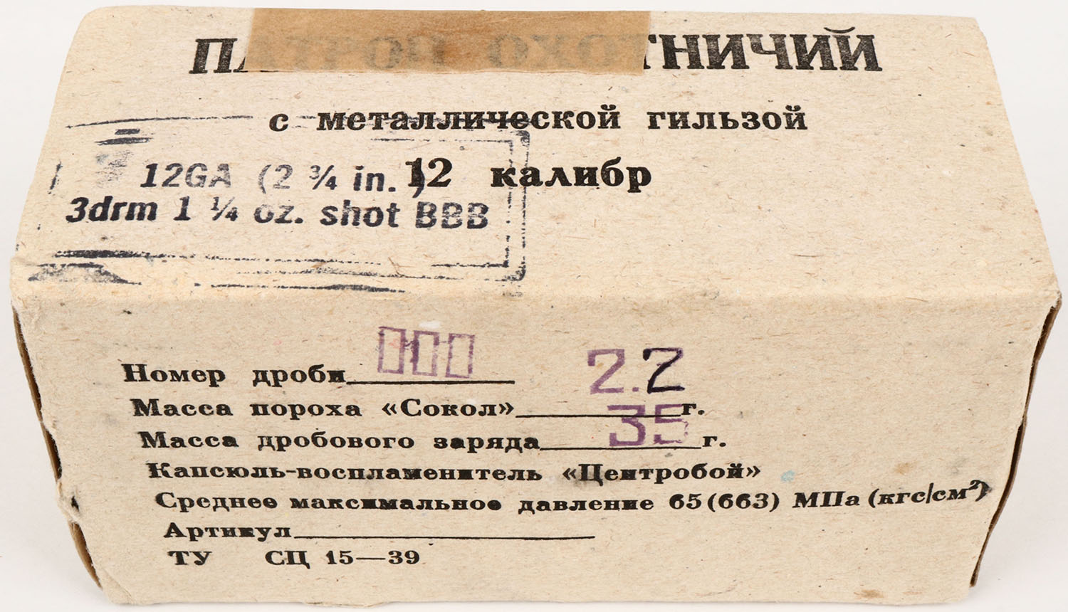 | Russian, Iiatpoh Oxothnpnn, 12ga., 1pc., Full, shot size BBB, co...