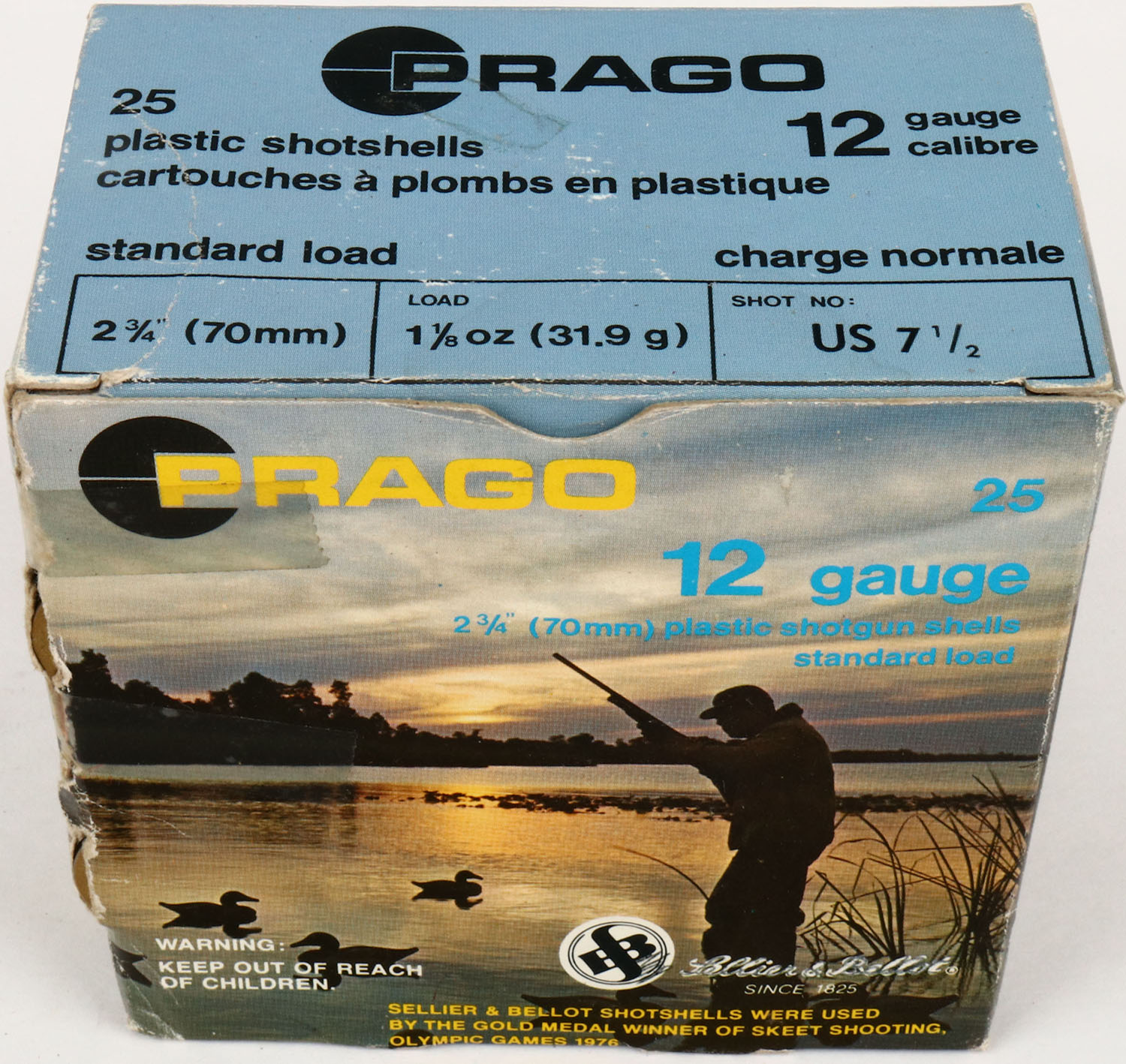 Sellier & Bellot, Prago, 12ga., 1pc., FULL, shot size 7 1/2, box is solid, Shells are excellent. Grade: Excellent + - Value: 8 to 20