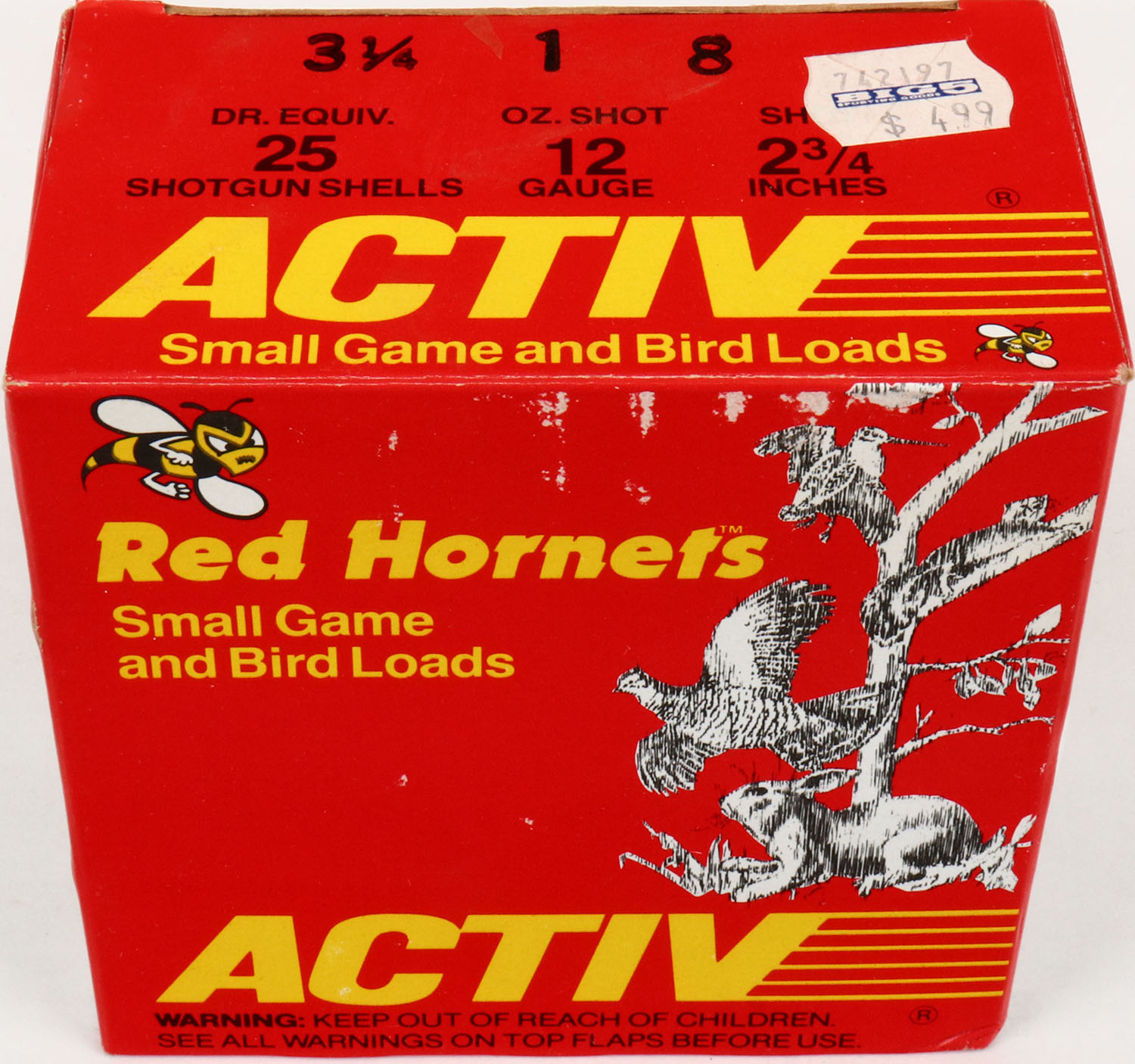 Activ, Red Hornets, 12ga., 1pc., FULL, shot size 8, box is solid, Shells are excellent. Grade: Excellent + - Value: 8 to 20