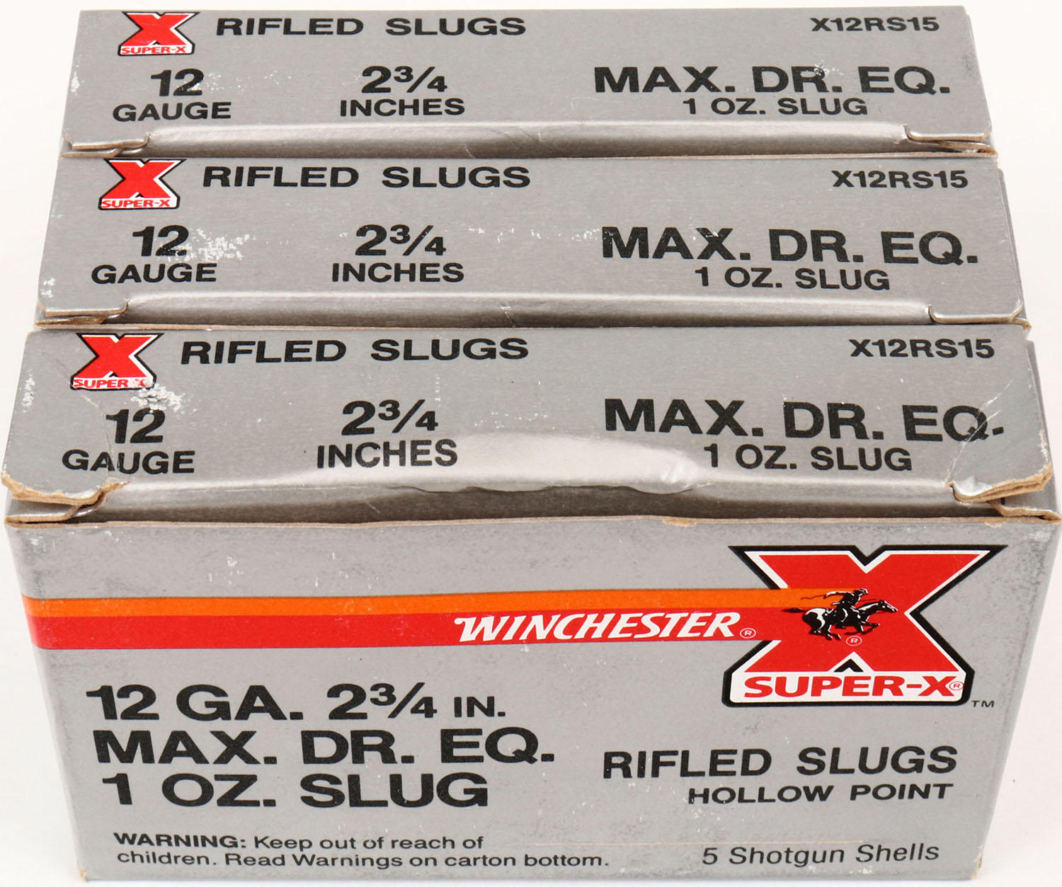 Lot of 3 Winchester Super X, 12ga., 1pc., FULL, shot size Rifled Slugs, boxes are solid, Shells are excellent. Grade: Excellent + - Value: 10 to 30