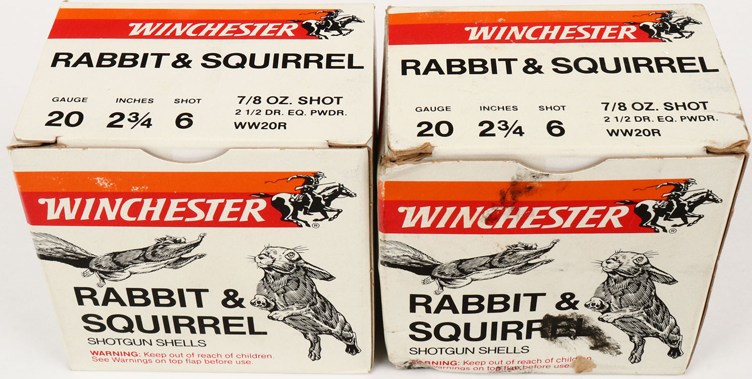 Lot of 2 Winchester, 20ga., 1pc., FULL, shot size 6, boxes are solid, Shells are excellent. Grade: Excellent + - Value: 10 to 30