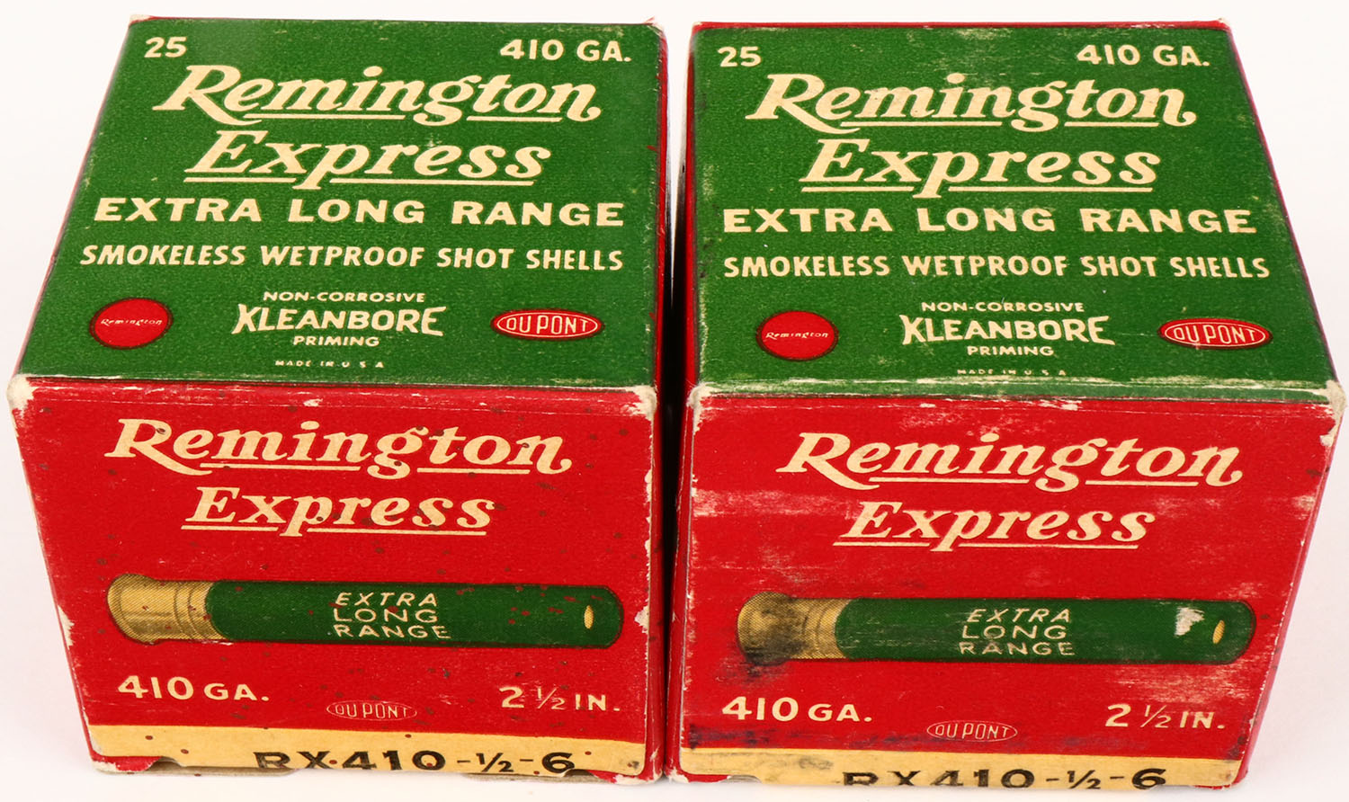 Lot of 2 Remington, 410ga., 1pc., FULL, shot size 6, boxes are solid, Shells are excellent. Grade: Excellent + - Value: 10 to 50
