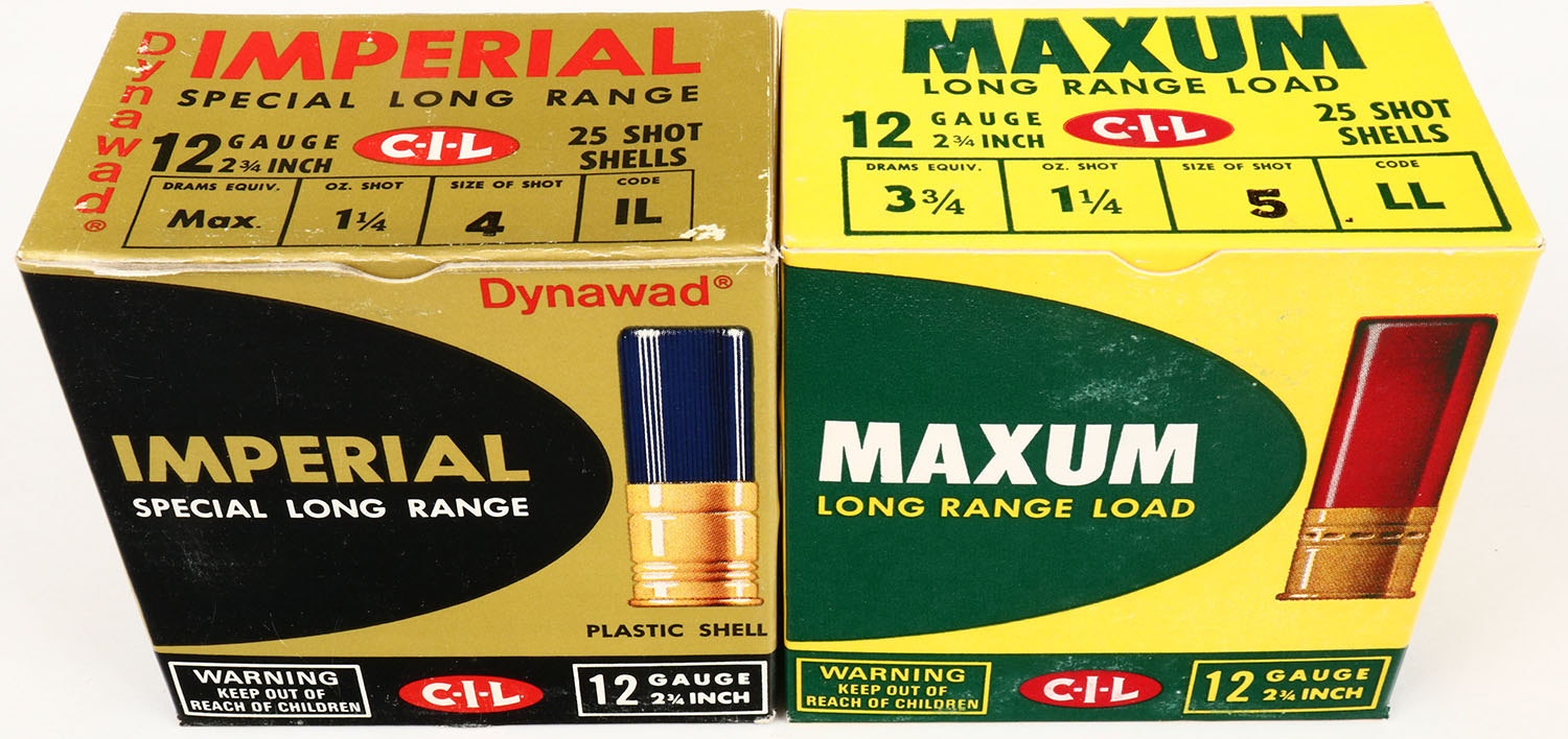 Lot of 2 CIL, 12ga., 1pc., FULL, shot size 5 & 4, boxes are solid, Shells are excellent. Grade: Excellent + - Value: 10 to 30