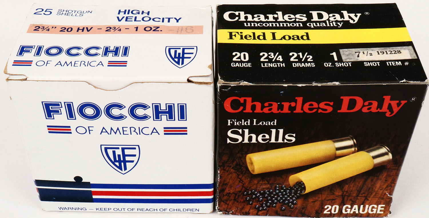 | Lot of 2 Charles Daly/Fiocchi, 20ga., 1pc., FULL, shot size 6 &...