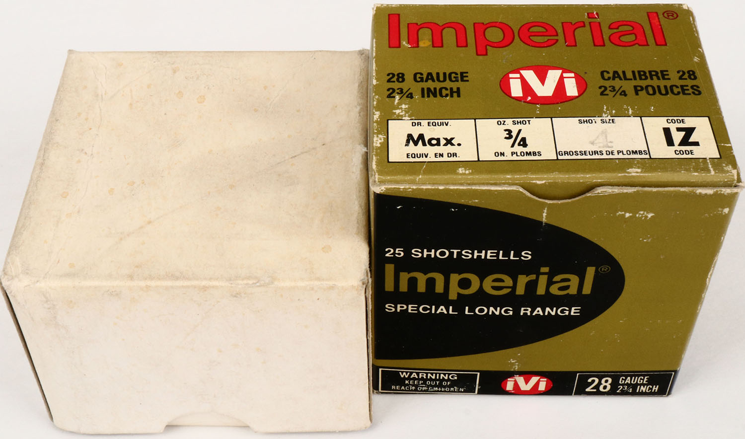 Lot of 2 Imperial/Eley, 28ga., 1pc., FULL, shot size 4, boxes are solid, Shells are excellent. Grade: Excellent + - Value: 10 to 40