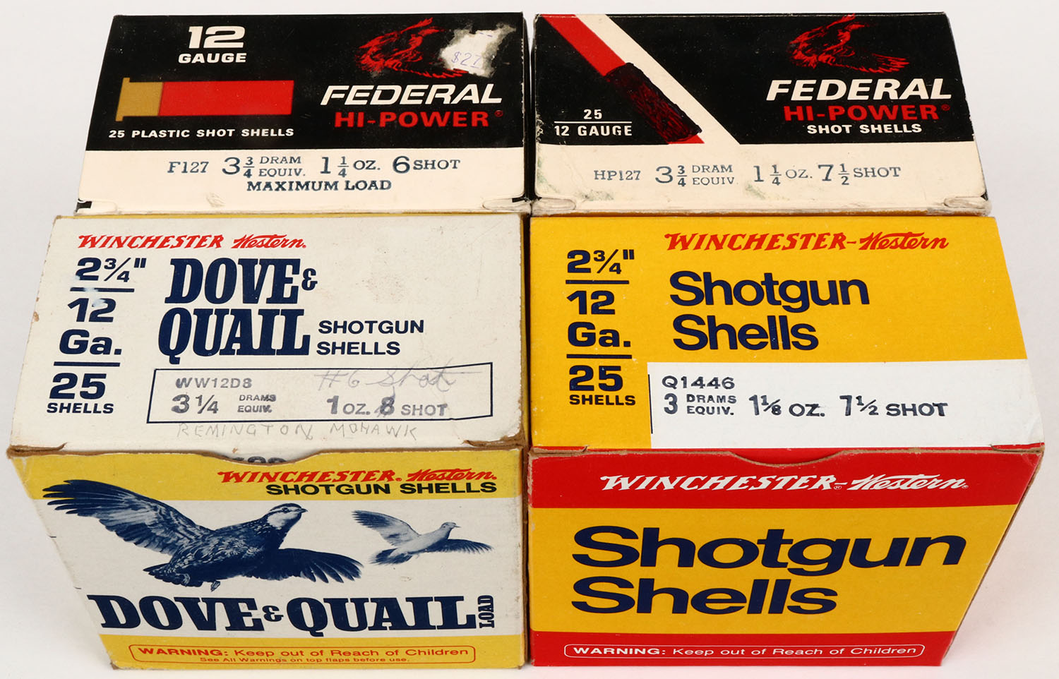 Lot of (4) appears full Shotshell Boxes. Grade: Excellent - Value: 2 to 60
