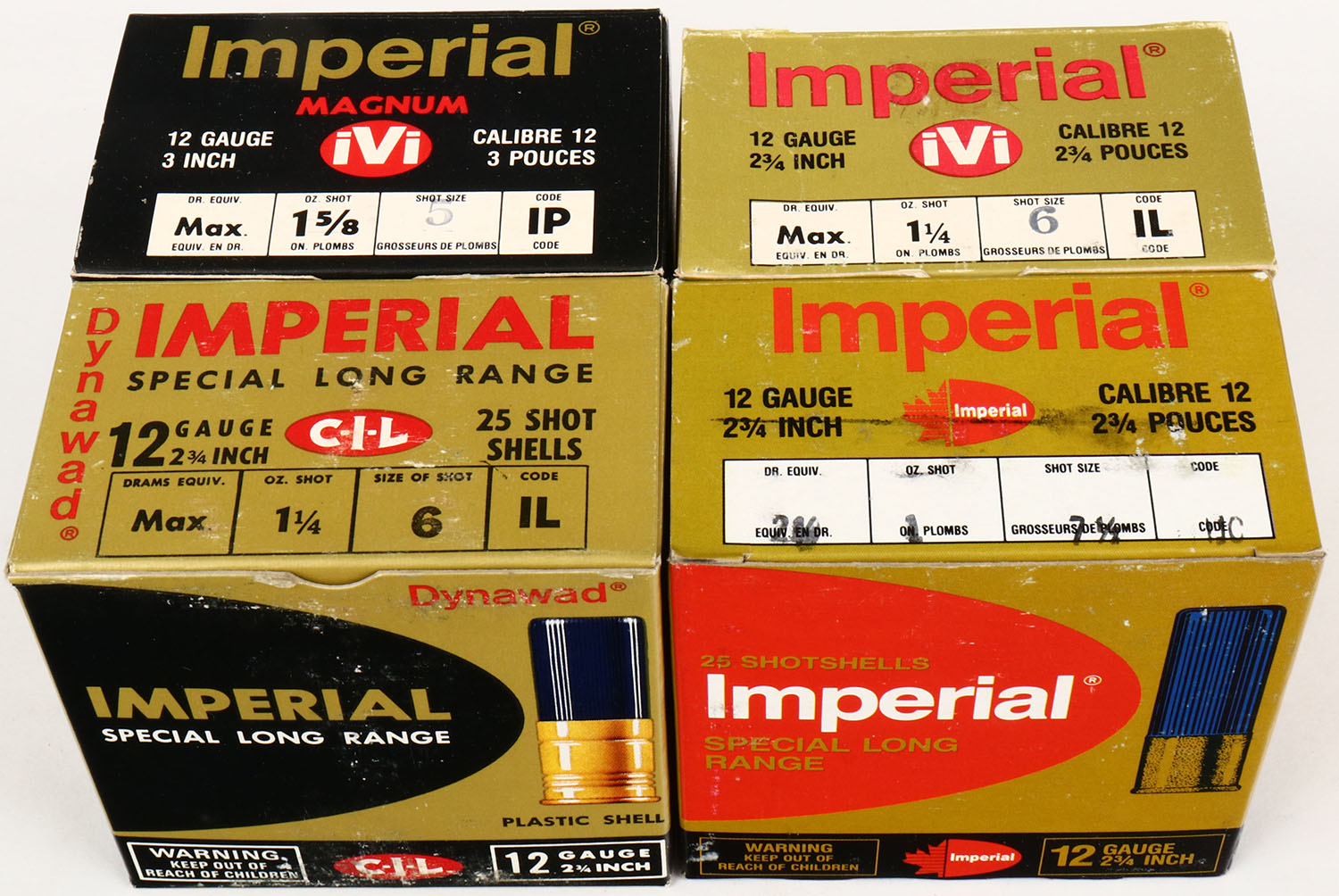 Lot of (4) appears full Shotshell Boxes. Grade: Excellent - Value: 2 to 60