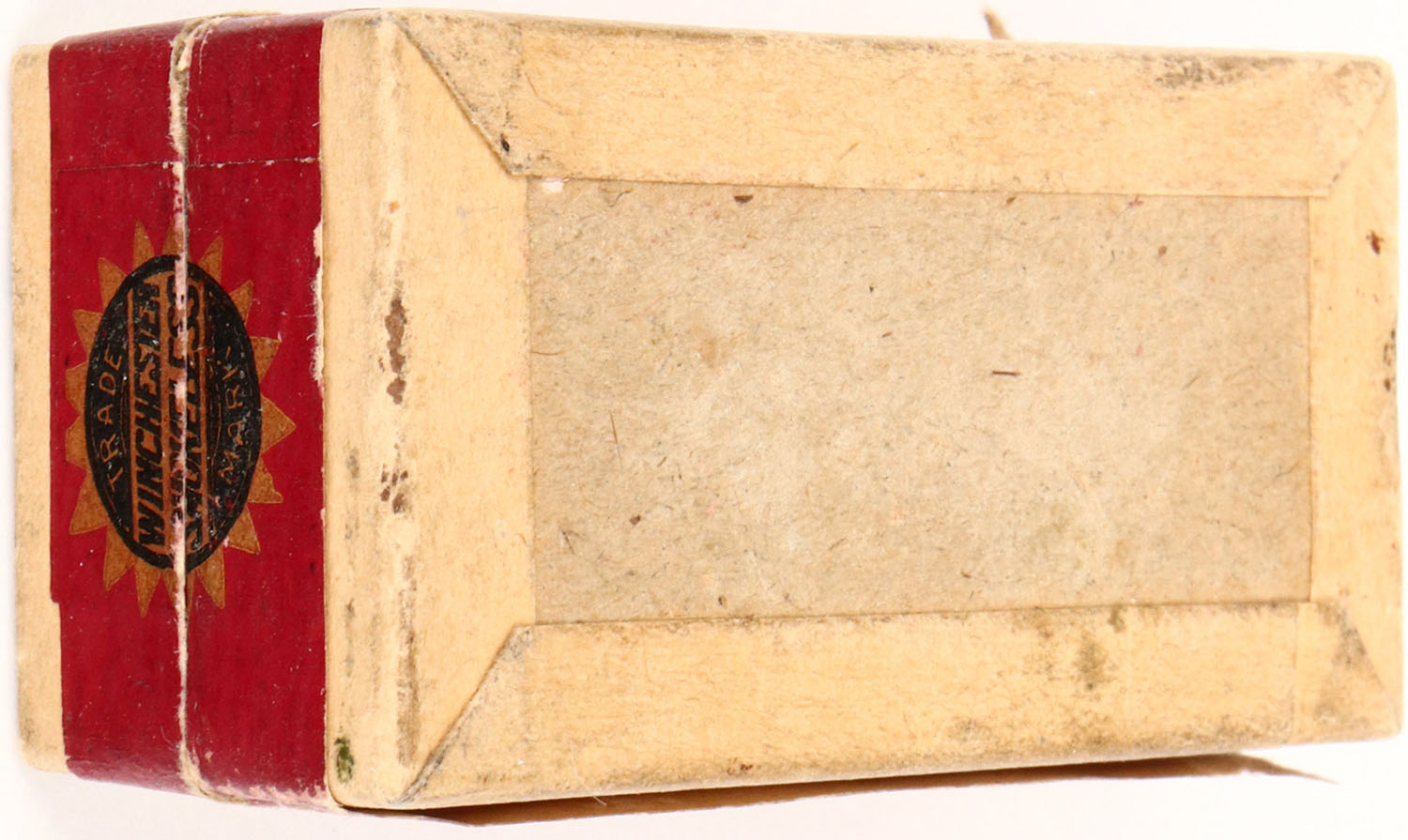 Winchester, .22 Long Rifle, Smokeless Rifle Cartridges, RR: WRA-118 LR-18a, Partial 47 correct rds., 2pc. Buff box with red & black top and side sealing labels, box is solid with excellent color, sealed on front side, seam split to front left corner of lid, very minor edge wear, some creasing to side sealing label, very minor age soiling, ammo is excellent. Grade: Excellent - Value: 10 to 100