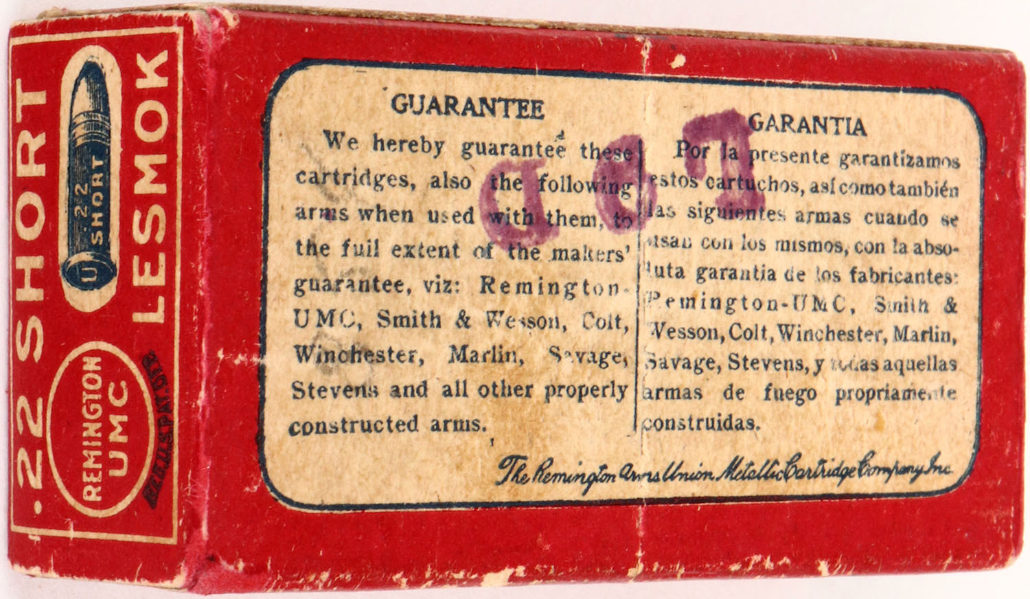 | REM-UMC, .22 Short, Lesmok, RHWeb: REM-4 S-2B, Full, 1pc. Red &...