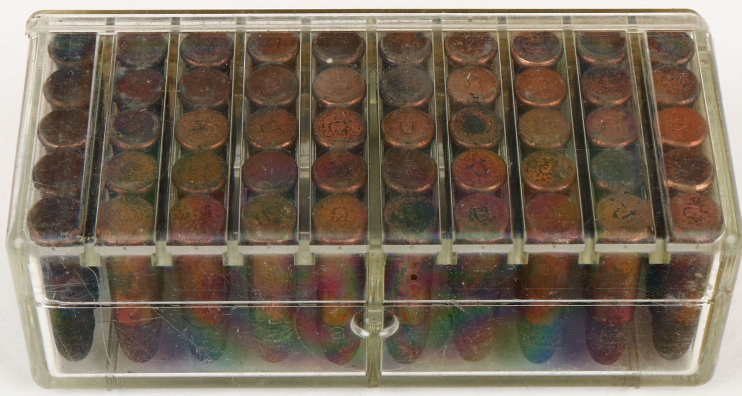 Coast to Coast, Master-Mag, .22 Long Rifle, High Velocity, RHWeb: CTC-2 LR-1.1, Full, 2pc. Clear plastic tray with bronze & blue side sealing labels, box is solid, label is 99% intact with minty color, ammo is very good. Grade: Excellent - Value: 10 to 50