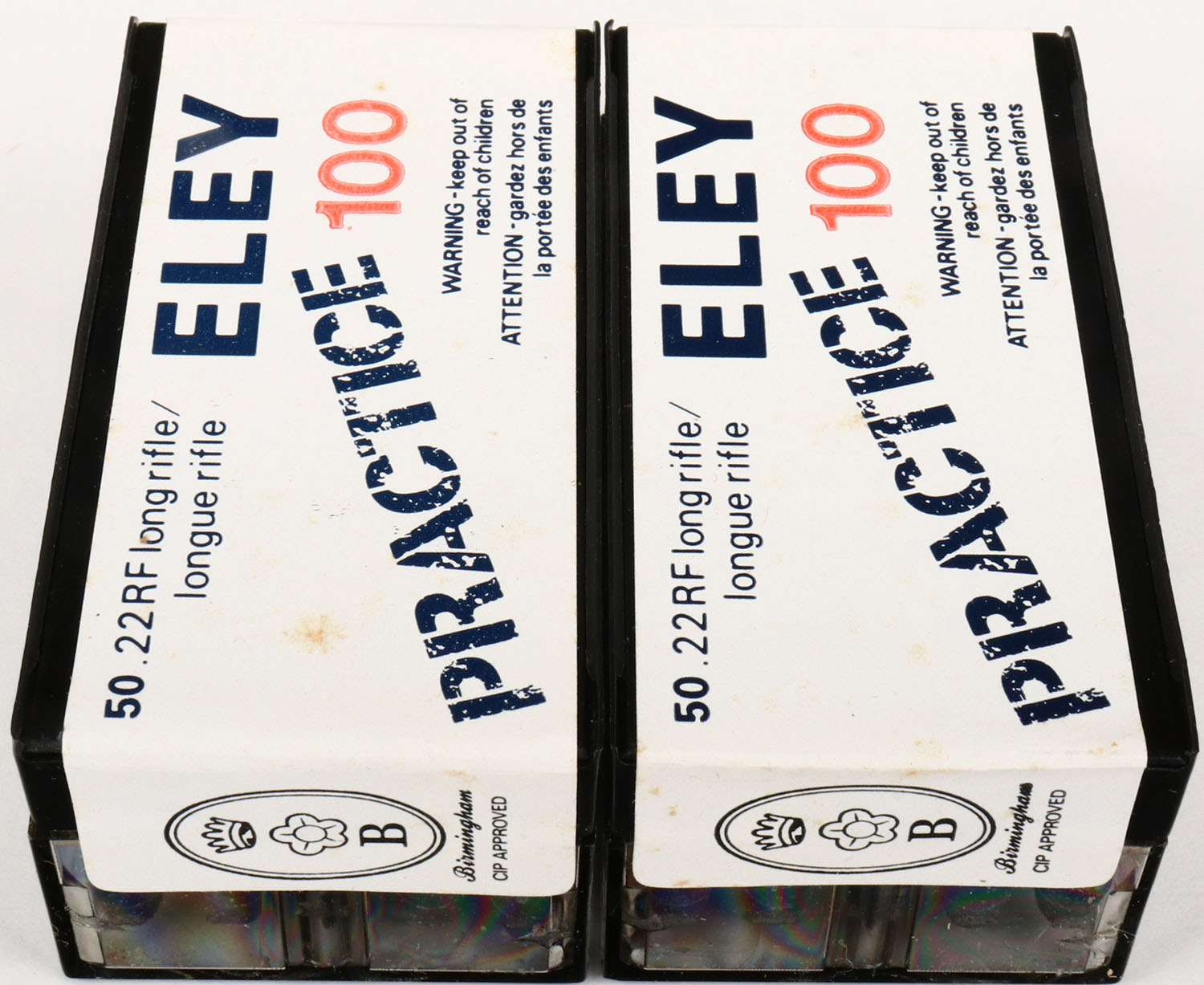 ELEY, Lot of (2) foreign boxes, all appear full. Grade: Excellent - Value: 10 to 100