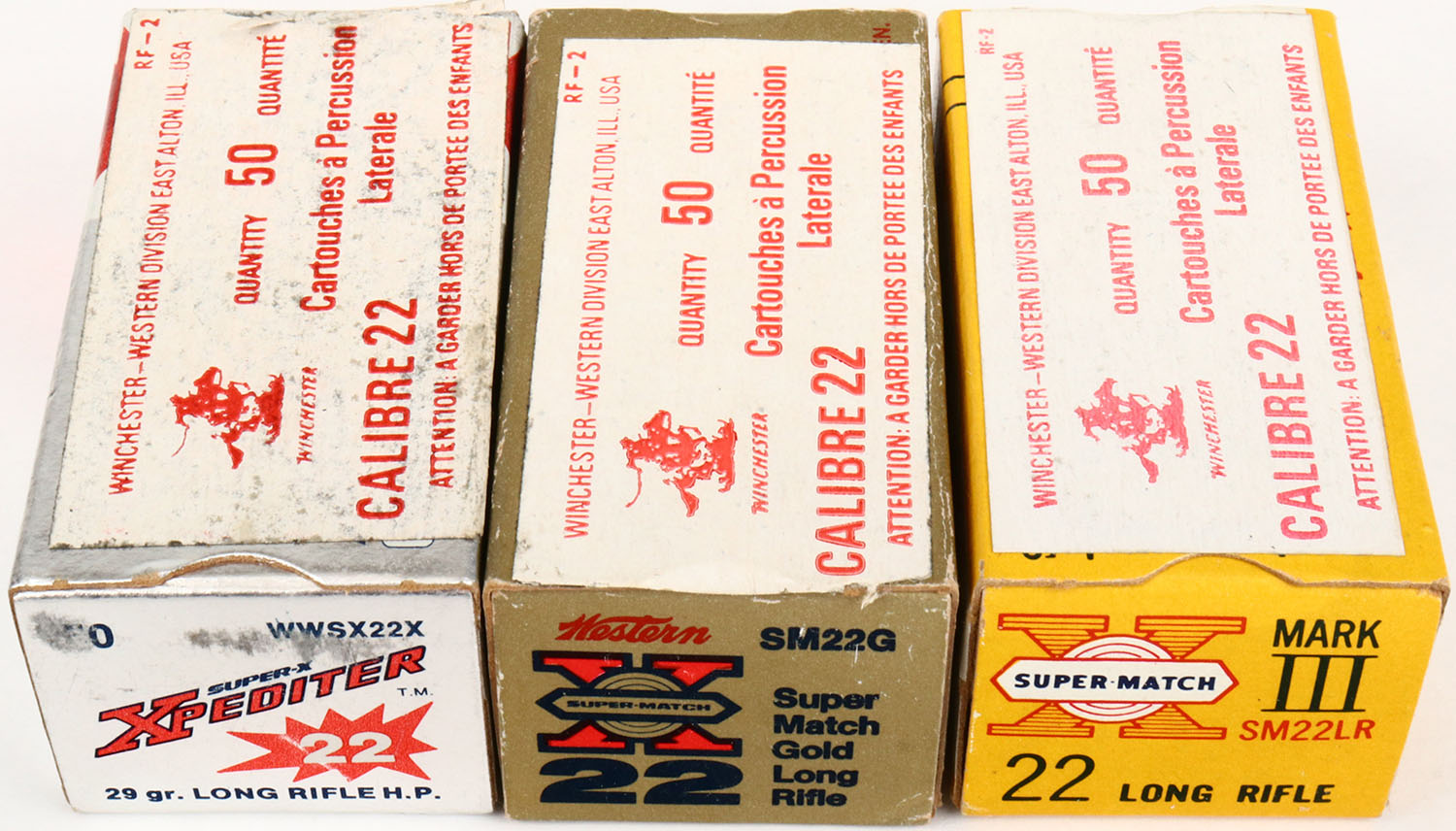Winchester of Australia, Lot of (3) foreign boxes, all appear full. Grade: Excellent - Value: 20 to 100