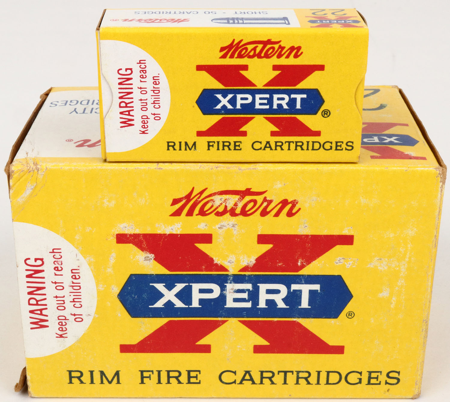 Western, Xpert, .22 Short, Special Lubricant, Full 500rds. 1pc. Yellow white & red brick, brick is solid with excellent color, very minor shelf & corner wear, edges are mostly crisp, end flaps are rigid, inside boxes are minty. Grade: Excellent ++ - Value: 30 to 120