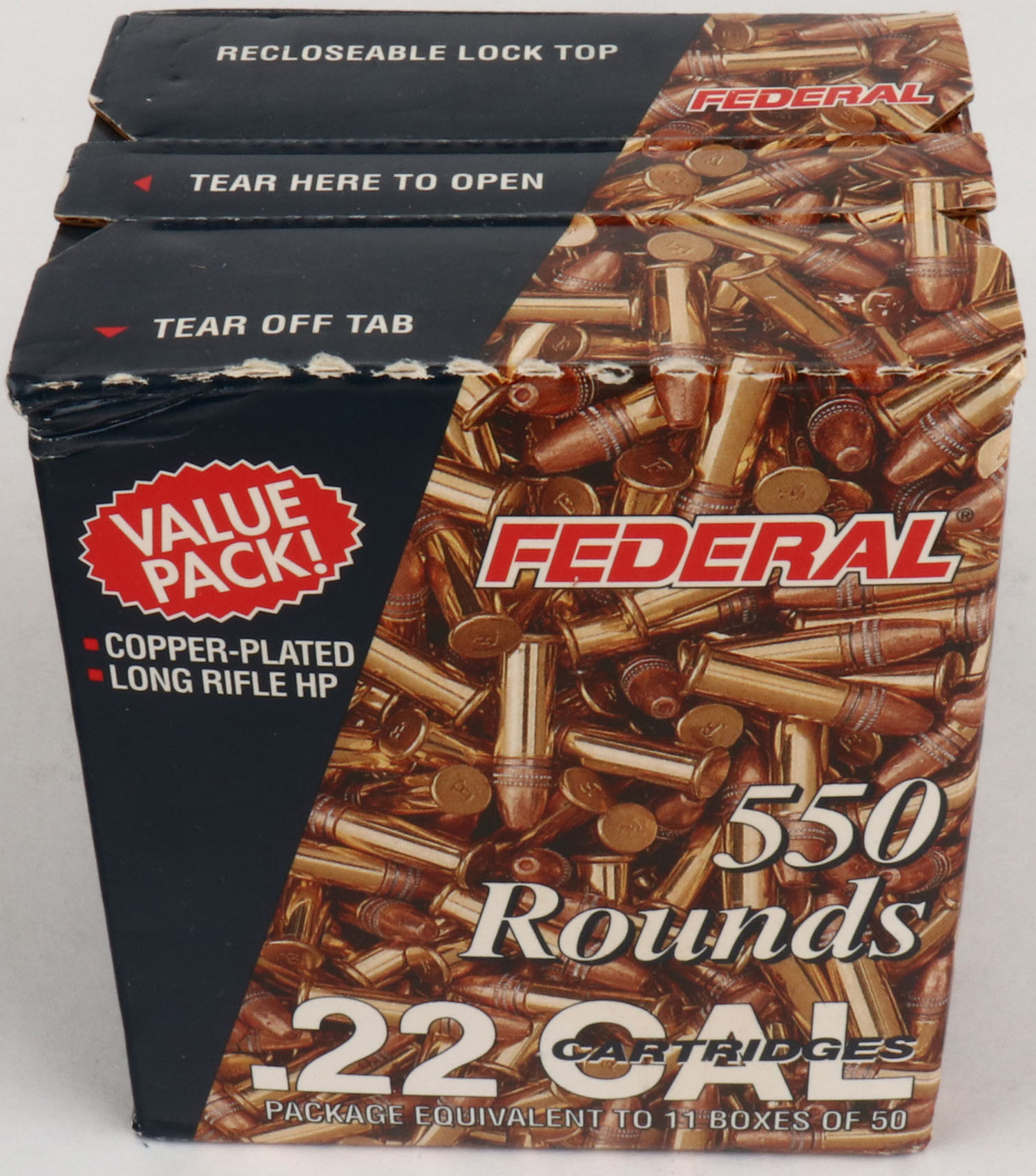 Federal, Value Pack!, .22 Long Rifle Hollow Point, Full & Sealed, 550rds., 1pc., Blue bulk box, box is mint with minty color. Grade: Mint - Value: 20 to 80