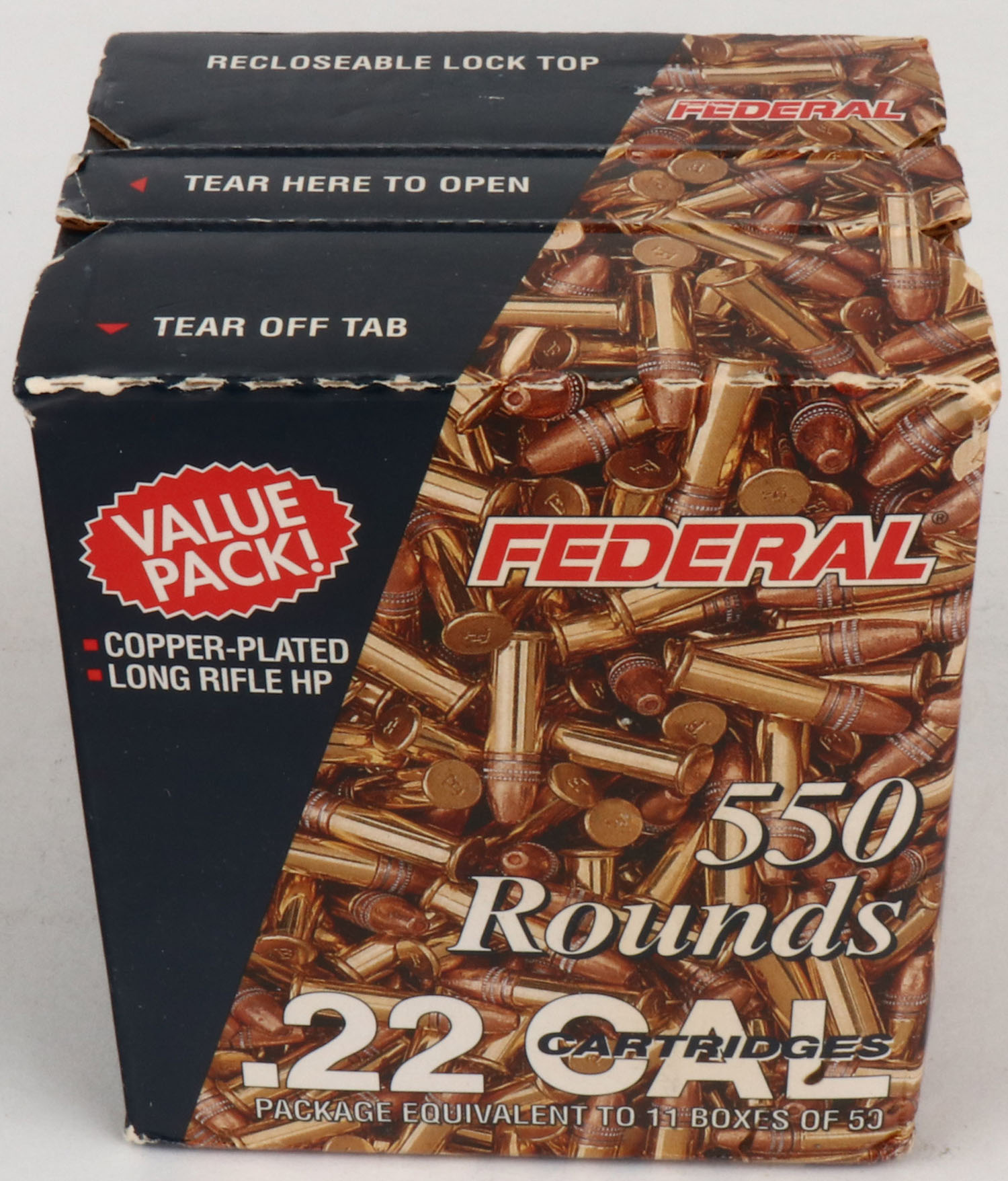Federal, Value Pack!, .22 Long Rifle Hollow Point, Full & Sealed, 550rds., 1pc., Blue bulk box, box is mint with minty color. Grade: Mint - Value: 20 to 80