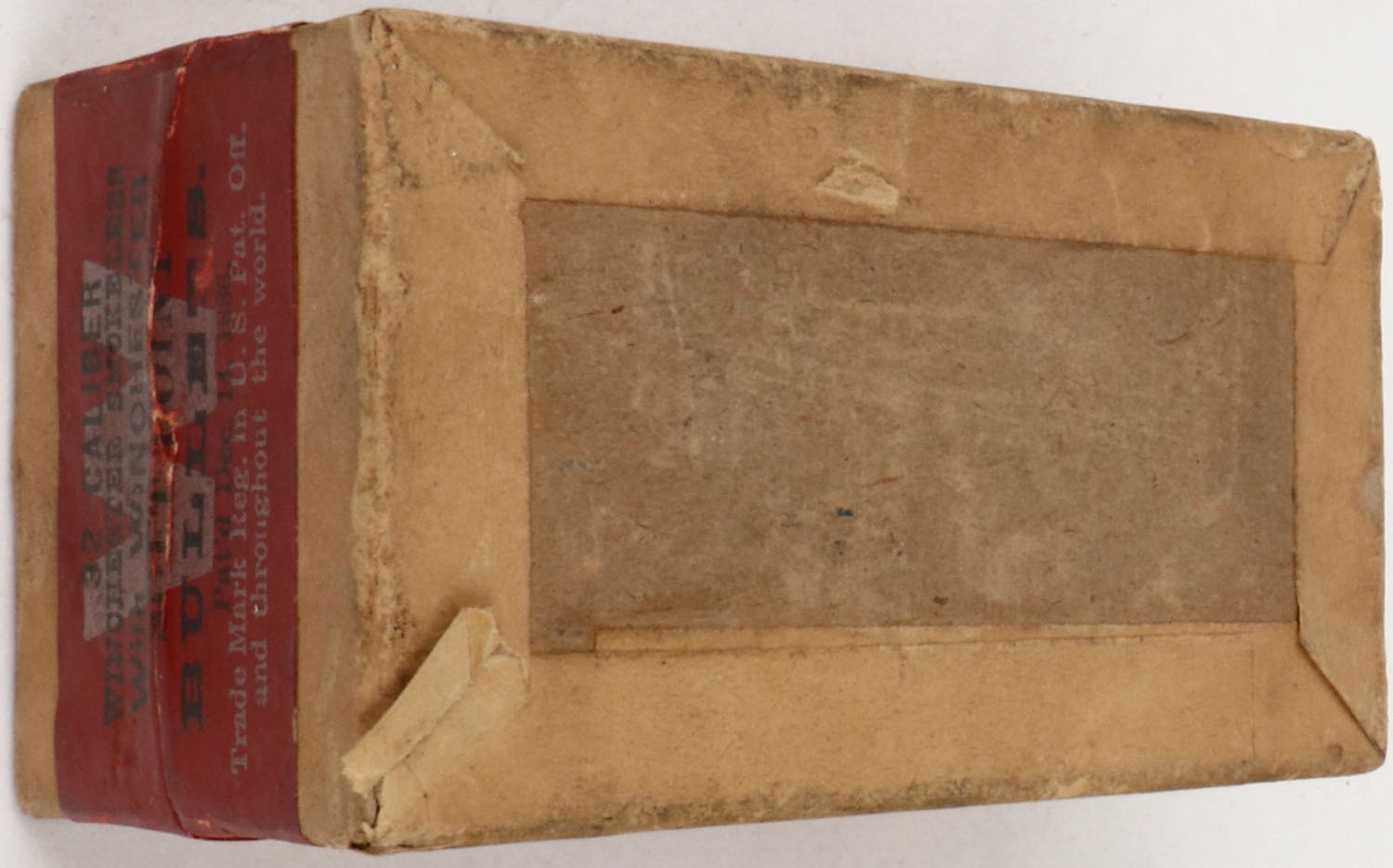 Winchester, .32 Caliber, Winchester Smokeless, Soft Point Metal Patched Bullets, FULL & SEALED, 2pc. Buff box with dark red top & side sealing labels, box is solid with excellent color, very minor age soiling & corner wear, edges are crisp, labels are intact. Grade: Excellent - Value: 100 to 300