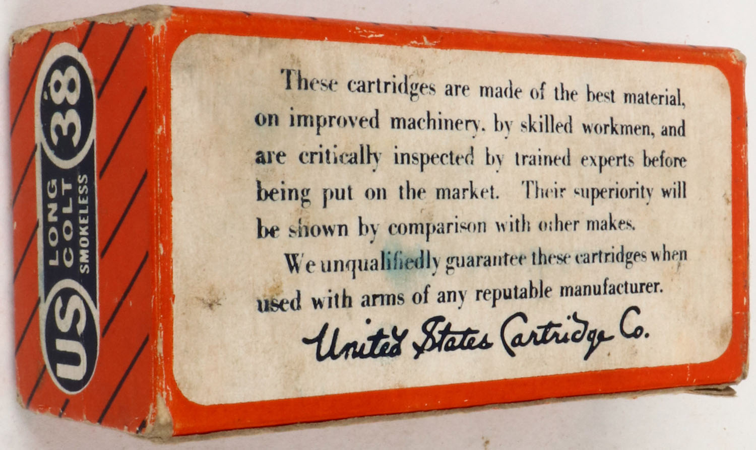 | U.S. Cart. Co., .38 Long Colt, Smokeless, Full, 1pc. Orange blue...