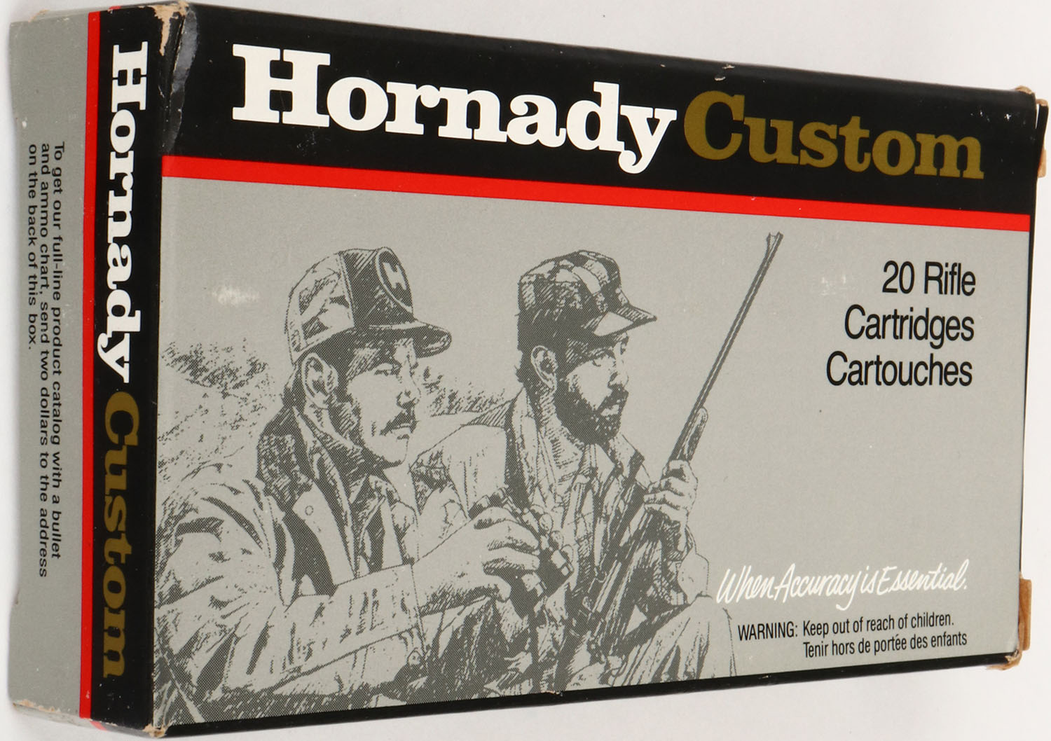 Hornady, .308 Win, 168 Gr. Boat Tail Hollow Point Match Bullet, 1pc, Full, gray/black box with red/gold/black/white print, box is solid with excellent color, light rub marks, light corner wear, crisp edges & solid end flaps, ammo is excellent. Grade: Excellent + - Value: 20 to 60