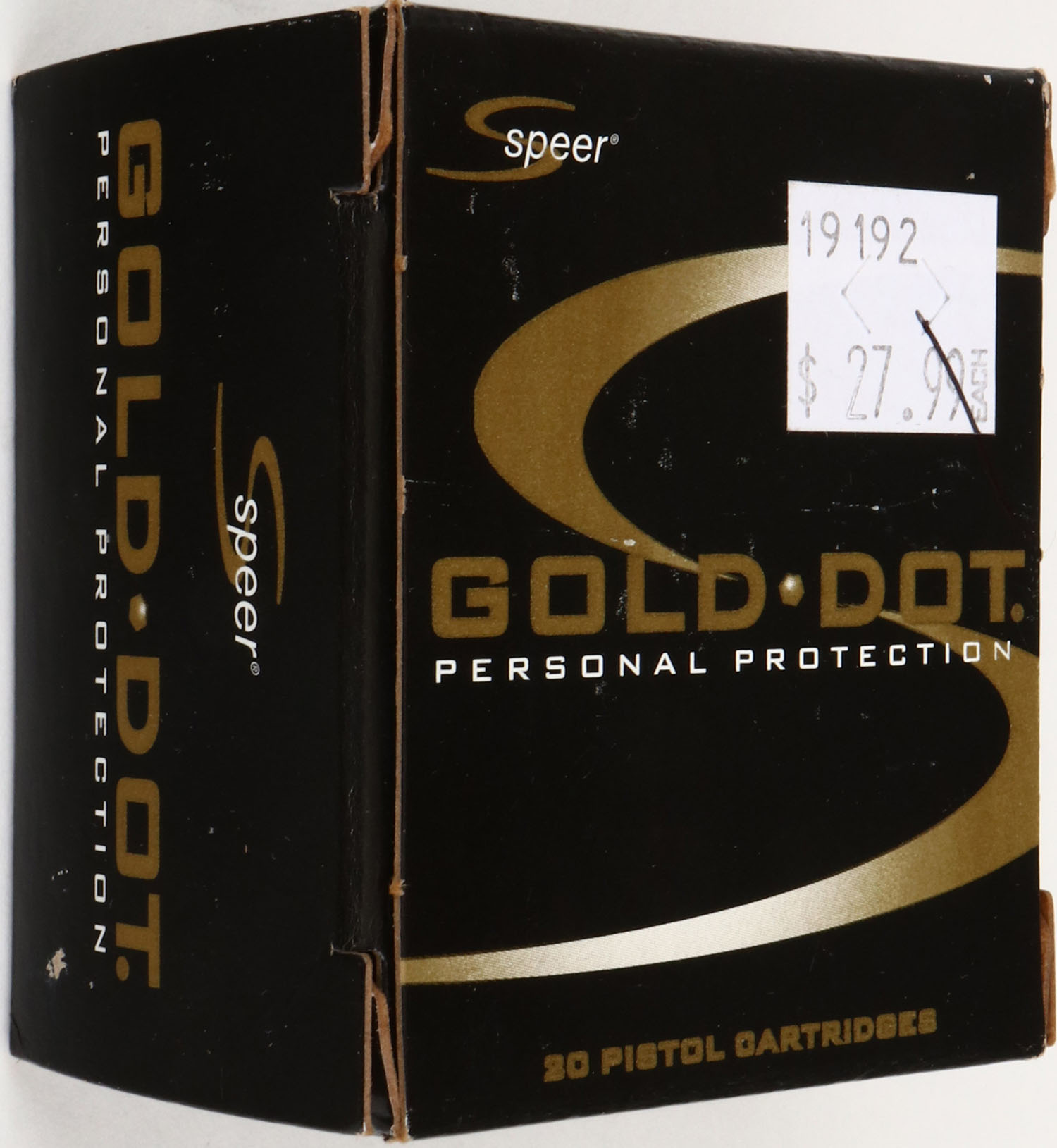 Speer Gold Shot, .327 Federal Mag, 100 Gr. GDHP, 1pc, Full, black box with gold/white print, box is solid with sticker, light rub marks & light edge wear, ammo is excellent. Grade: Excellent - Value: 20 to 80