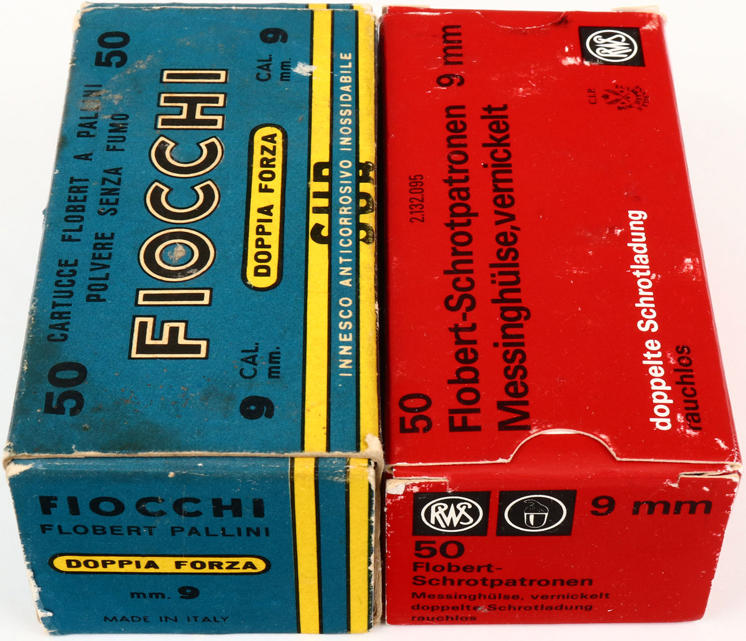Mixed Mfg., Lot of (2) Foreign 9mm Flobert Shot boxes, boxes are full and solid, ammo is excellent to minty. Grade: Excellent ++ - Value: 20 to 80