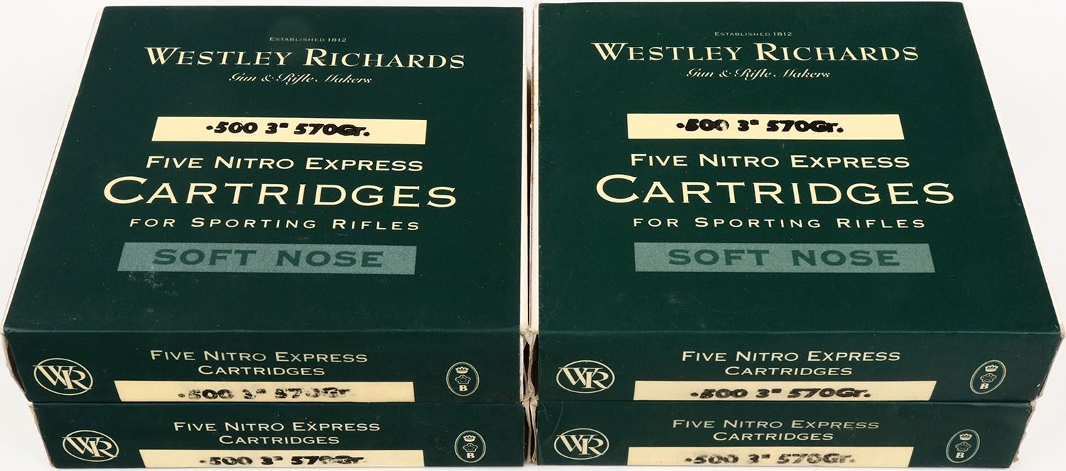 Westley Richards, Lot of (4) .500, 3'', 570 Gr., All boxes are FULL & SEALED. Grade: MINT - Value: 40 to 200