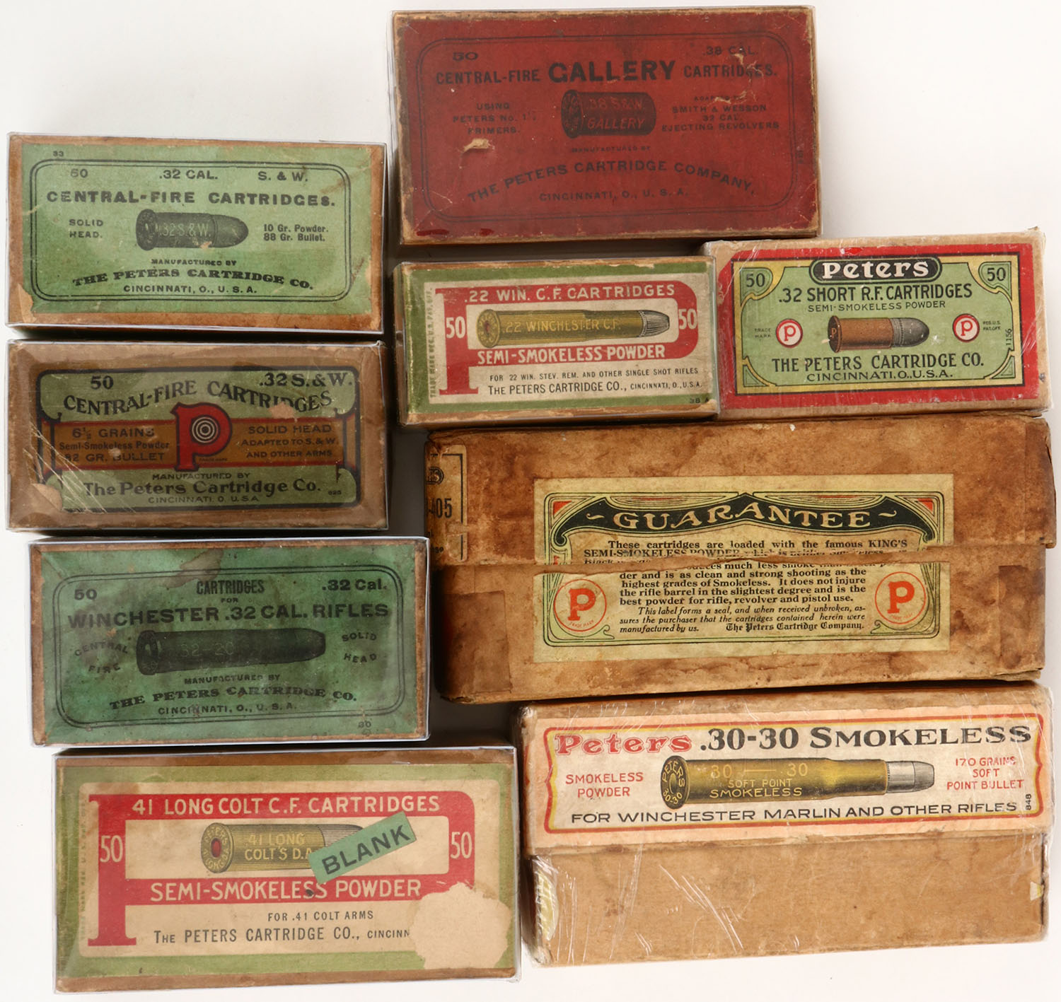 Mixed Mfg., Lot of (9) PARTIAL ammo boxes, all boxes appear excellent. Grade: Excellent - Value: 10 to 100