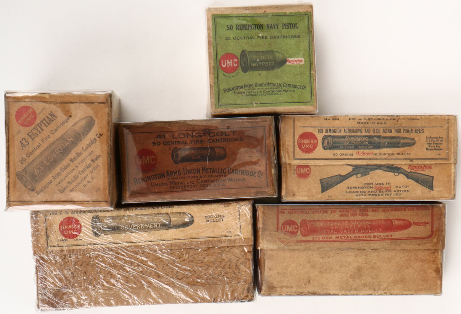 Mixed Mfg., Lot of (6) EMPTY ammo boxes, all boxes appear excellent. Grade: Excellent - Value: 2 to 100