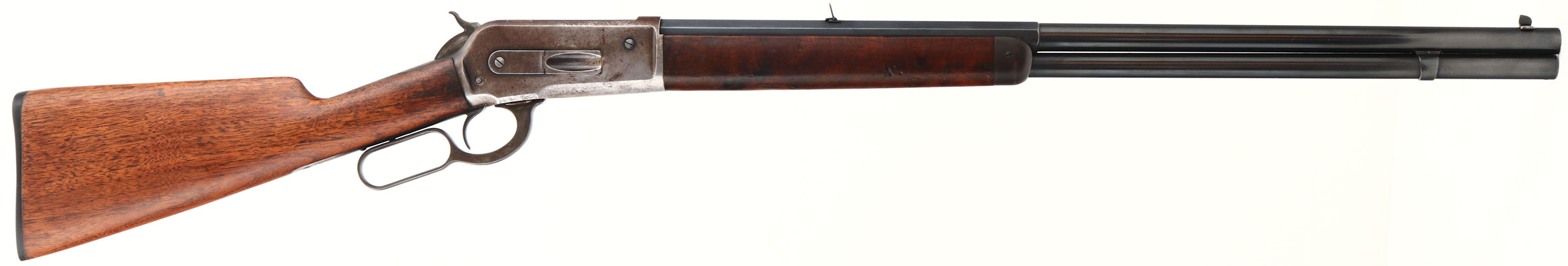 SPECIAL ORDER Winchester, Model 1886, (MATTED BARREL), CAL: 40-82 WCF, MFG: 1918, SN: 156140, Lever Action Rifle, 26'' Half octagon/half round barrel, Full mag. A special order rifle, with unique features. The orignal straight grip stocks are very good. The stock has been lightly sanded & nicely refinished, with a couple of minor spot with filler & a small toe chip that has also been filled. The original forend carries the original finish, with several minor contusions or scratches. The barrel is a special order having a rare full length matted top on the 1/2 octagon 1/2 round barrel. According to a 2007 WACA article on the subject, Winchester records indicate only 206 matted barrel 1886 rifles were produced in all calibers. The high luster metal blue finish on the barrel & mag has been nicely restored & rates 98%, with some light speckling under blue. The receiver, lever, hammer & forend cap are worn mostly gun metal gray, with a thin layer of brown patina. The sliding bolt retains a 85% of its original bright blue. Fitted with a special order two leaf folding rear sight & a small blade front sight. Bore is excellent. Ordered with a Winchester hard rubber, widow's peak, shotgun buttplate. Comes with a Cody Winchester Factory Records Letter, which simply confirms no records for this rifle are available. This rare special order rifle, with a very nice overall appearance. FFL or C&R Req. - Value: 3000 to 6000