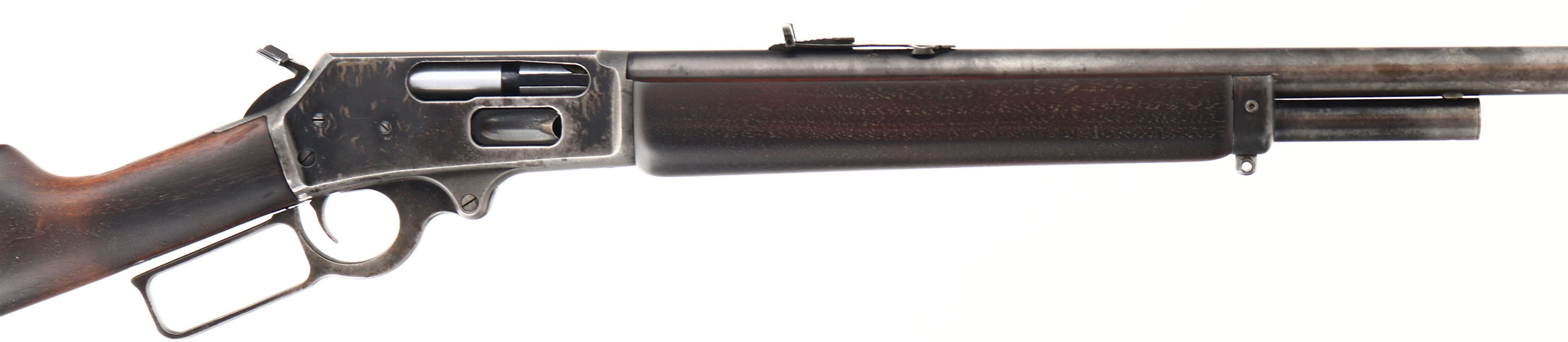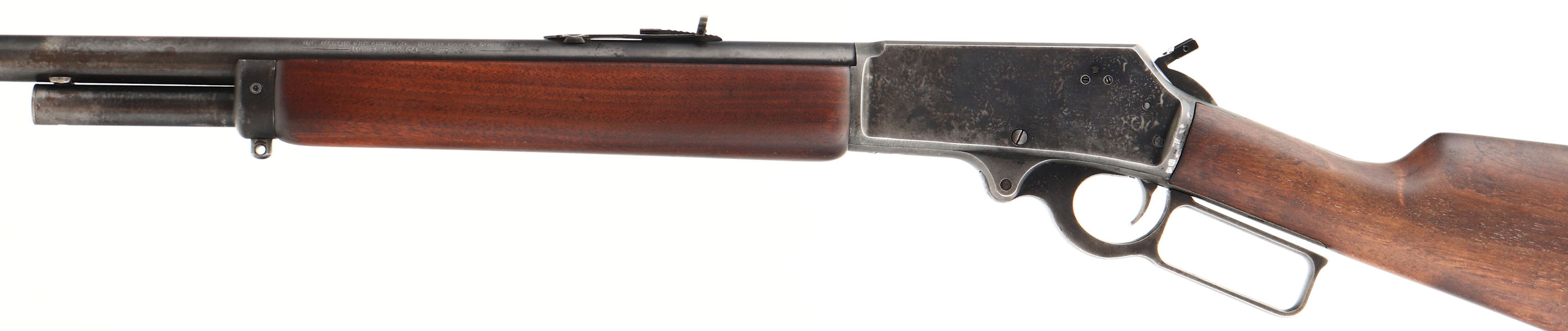 Marlin, Model 1895, CAL: 45-70, MFG: 1976, SN: 24072682, Lever Action Rifle, 21 7/8'' barrel. The original straight grip wood stocks are very good & solid, despite the wood being very dark & most of the original finish being worn or lightly sanded.. The stocks displaying contusions & dings. The metal blue finish has worn to a mix of gun metal gray, with maybe 20% remaining blue. Bore is excellent & bright. The receiver is factory tapped for scope mounts. The barrel holds an adjustable rear sight & blade front sight. Buttstock carries a Marlin checkered plastic buttplate, with a small chip at the toe. The stock has ''Bullseye'' trademark in belly of the stock & carries sling studs. FFL Req. - Value: 400 to 800