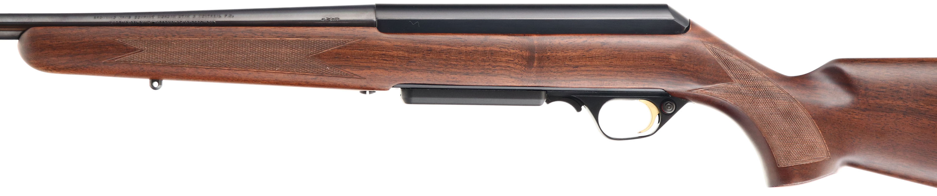 BOXED, Browning, Acera NS, CAL: 300 Win Mag, MFG: Modern, SN: 352MZ01011, Straight Pull Bolt Action Rifle, 24'' Barrel. The checkered flat pistol grip wood stock is excellent, basically mint. The metal blue finishes rate 99%+. No open sight provisions. Receiver is factory tapped & drilled for scope mounts. Buttstock carries a factory solid recoil pad. Gold trigger. Sling studs. Comes in original box, with owners manual & original packaging. A NIB rifle in a popular caliber. It is believed that only 600 of these were imported into the U.S. by Browning. FFL Req. - Value: 600 to 1200