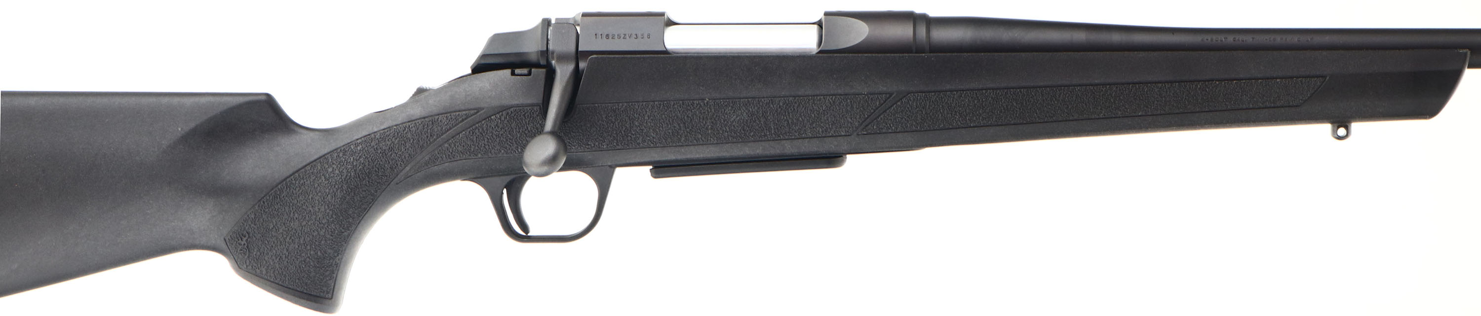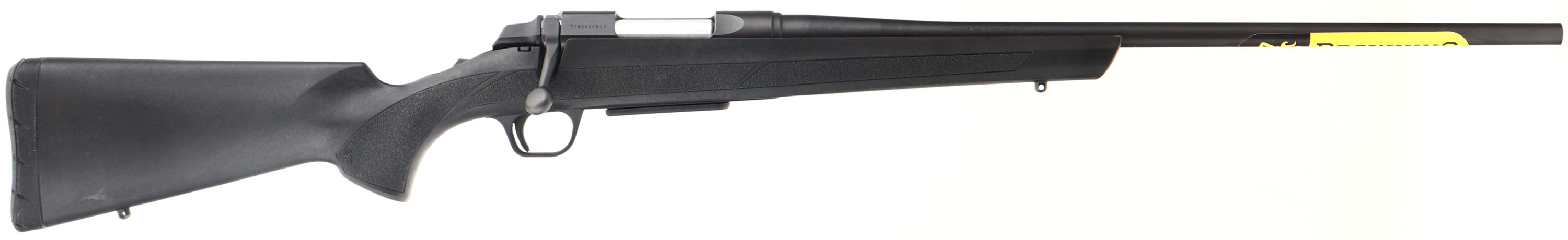 Browning, A-Bolt, CAL: 7mm-08 Rem, MFG: Modern, SN: 11625ZV358, Bolt Action Rifle, 21 7/8'' barrel. The synthetic black stock, with textured grips, is excellent, as new. The original metal black finish rates 99%+ overall. Bore is excellent. No open sight provisions. Receiver has open factory tapped & drilled provisions for a scope for a scope mount. Dual sling studs. Buttstock carries a solid black rubber recoil pad. Basically a near new hunting rifle without the box. Still has the Browning marketing rack sticker on the barrel. FFL Req. - Value: 400 to 800