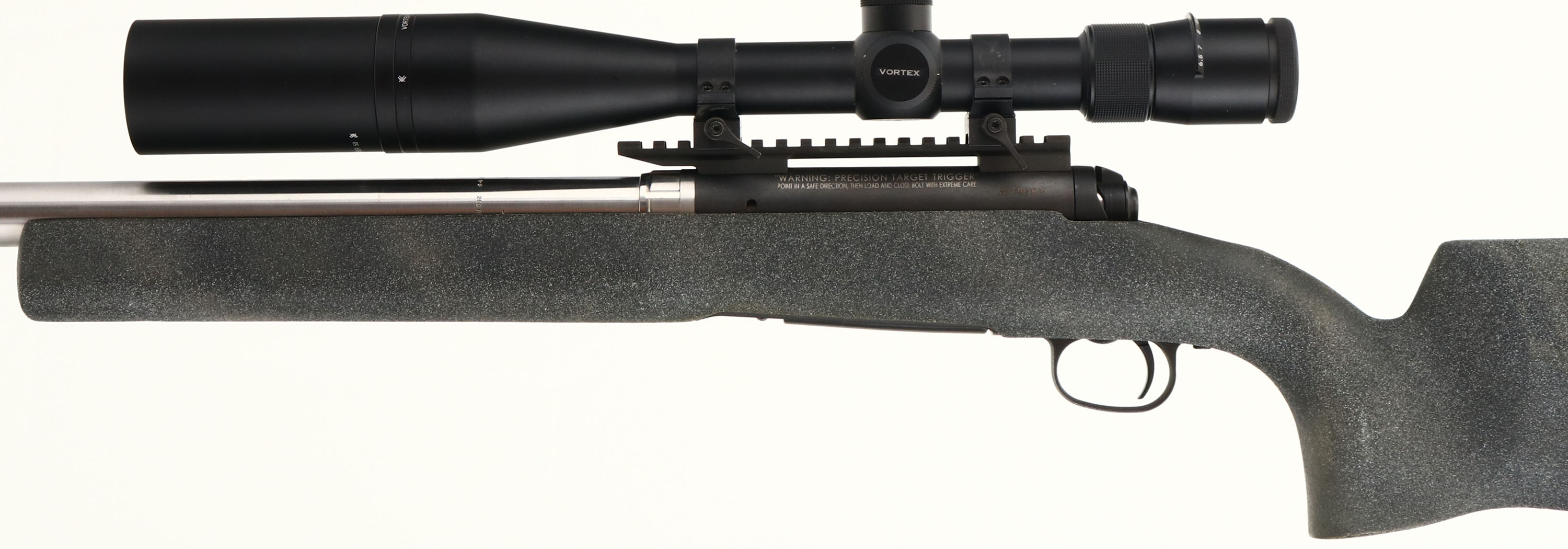 CUSTOM, Savage Action, Long Range Precision Rifle, CAL: Marked 260 REM MATCH 1-8, MFG: Modern, SN: J046783, Bolt Action Rifle, 27 1/2'' barrel. The custom comb height adjustable & butt stock length adjustable, pistol grip, textured synthetic stock is excellent, with light wear & slight discoloration at the handling points. The custom CBI heavy target stainless steel barrel is excellent. Bore is excellent, near mint. The receiver carries a Vortex Viper 6.5-20x50 scope mounted on a picatinny rail, with no open sight provisions on the barrel. Adjustable trigger, sits at less than 1lb. Stock carries a length adjustable stacked buttplate. A nicely built customized target rifle, ready for the range or hunt! FFL Req. - Value: 800 to 1500