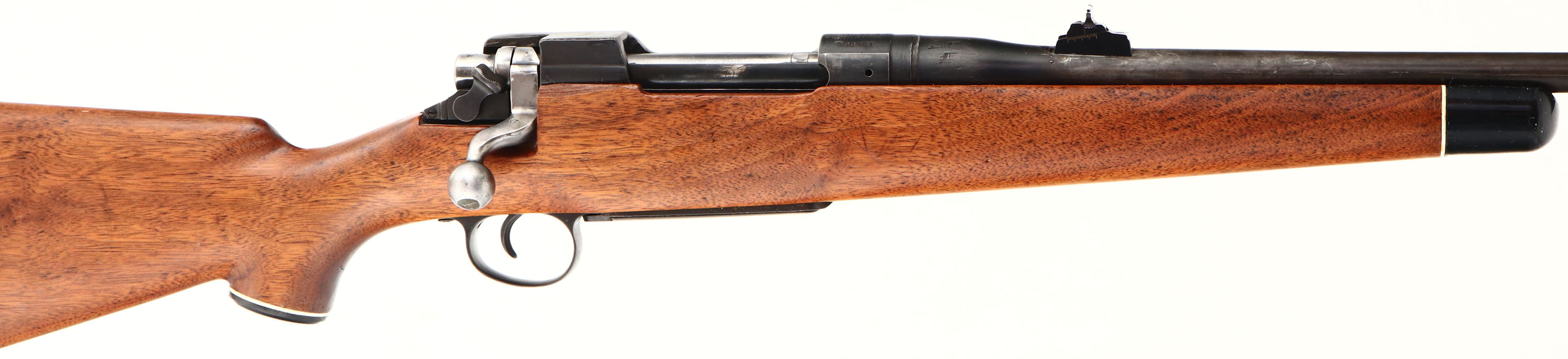 Eddystone, Model M1917 Sporterized, CAL: 30-06, MFG: 1918, SN: 800751, Bolt Action Rifle, 23 1/2'' barrel. The Monte Carlo style wood stock is very good, featuring a raised cheek, capped pistol grip & ebony forend tip. The stock carries an added layer of finish & displays contusions, scrapes, nicks & dings. There is a 1'' edge chip in front of the bolt handle. The metal finish is a mix of original blue, an added cold blue finish & worn areas which are gun metal gray, with a brown patina. Bore is very good & bright, with strong rifling. The barrel holds an adjustable rear sight & ramped blade front sight. Buttstock carries a grooved black plastic buttplate. FFL or C&R Req. - Value: 250 to 500