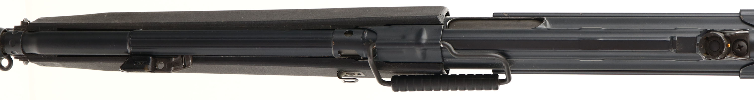 Heckler & Koch, Model HK91, CAL: 7.62x51mm NATO (.308), MFG: 1979, SN: A018451, Semi Auto Rifle, 19'' barrel. The HK91 is a semiautomatic rifle version of the Heckler & Koch G3 automatic rifle that was produced by Heckler & Koch for the civilian market in the 1960's. The retractable one position metal stock, polymer handguard & pistol grip are excellent, displaying overall minor wear from use. The metal finish rates 95% overall, with light scuffs & scrapes. Bore is excellent. The rifle is fitted with a standard turn adjustable rear sight & elevated front globe sight. Buttstock carries a solid textured buttplate. No magazine. FFL Req. - Value: 1250 to 2750