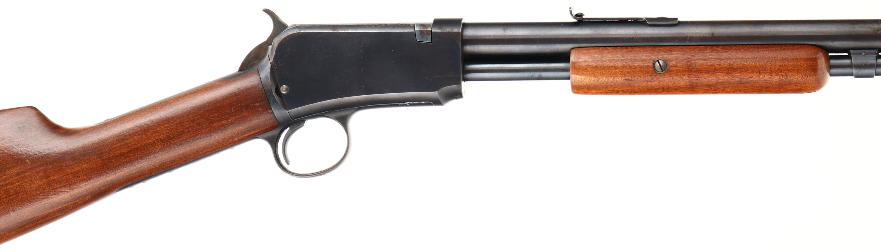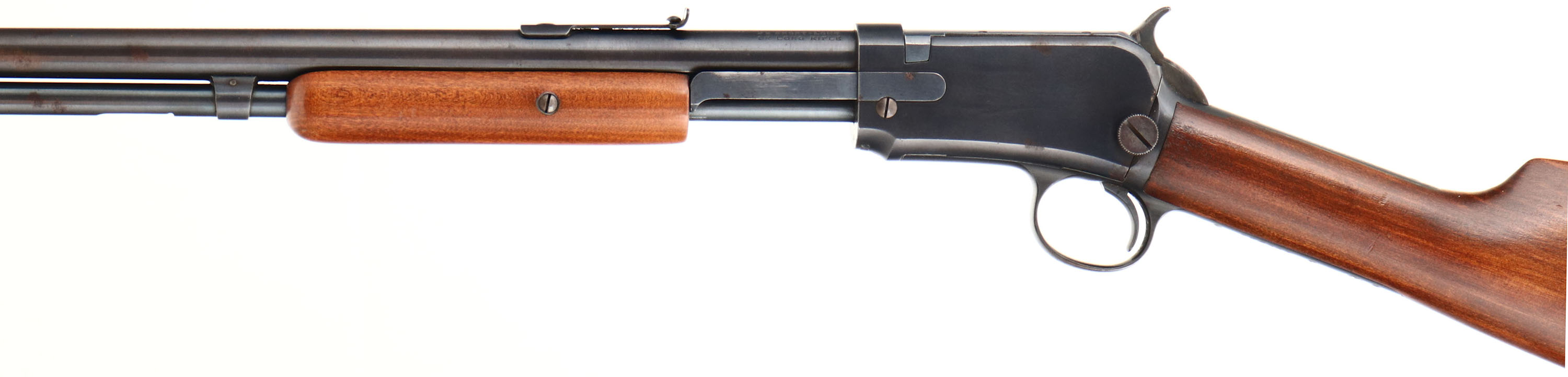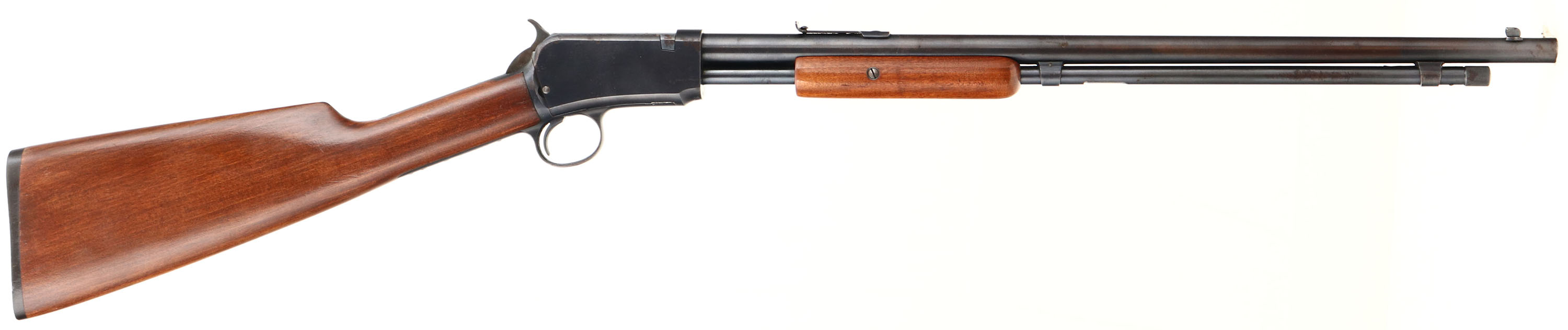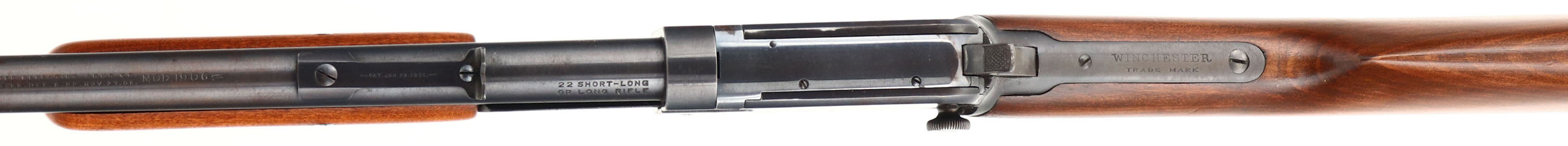 Winchester, Model 1906 , .22 S. L. LR., MFG: 1908, SN: 115680, Pump Action Rifle, 20'' Round barrel, The original straight grip gum wood stocks are excellent, with nearly all the original finish & virtually no rubs or handling marks. The forend is of the smooth variety. The original metal blue finish on the barrel, mag & receiver rates 90%, with some spotty areas of flakey finish loss toning to a brown patina. Bore is excellent. Fitted with standard barrel sights. Winchester plastic buttplate, with engraved screws. An original, overall excellent condition & collectible example.* FFL or C&R Req. - Value: 1000 to 2000