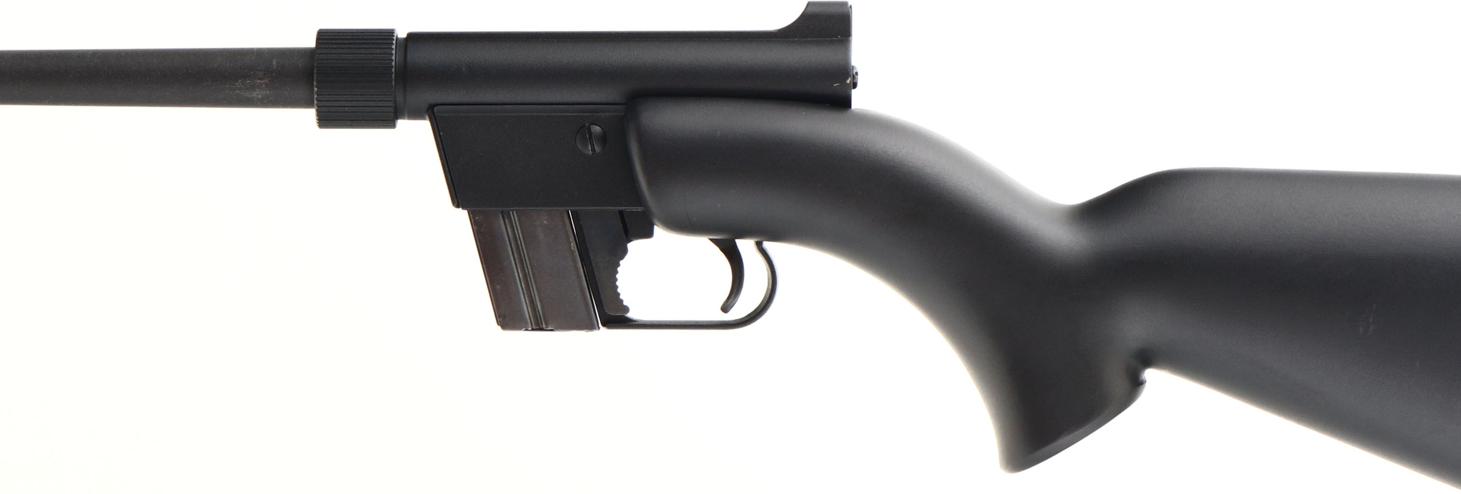 Charter Arms, Model AR-7 Explorer, CAL: .22 LR, MFG: 1960's, SN: A315465, Semi-Auto Rifle, 16'' detachable barrel. The factory flat pistol grip, black synthetic stock is very good, with several minor scuffs or scratches. There is an individuals name & DL# electric pencil engraved on the right side of stock near the butt cap. The original metal blue finish rates 95% on barrel, mag & receiver, which can all be dismantled & stored in the stock. Bore is excellent. Factory sights. Stock carries a black plastic buttplate or cap, which is removable to access the parts storage compartments. A great little backpack or survival rifle. FFL or C&R Req. - Value: 150 to 250