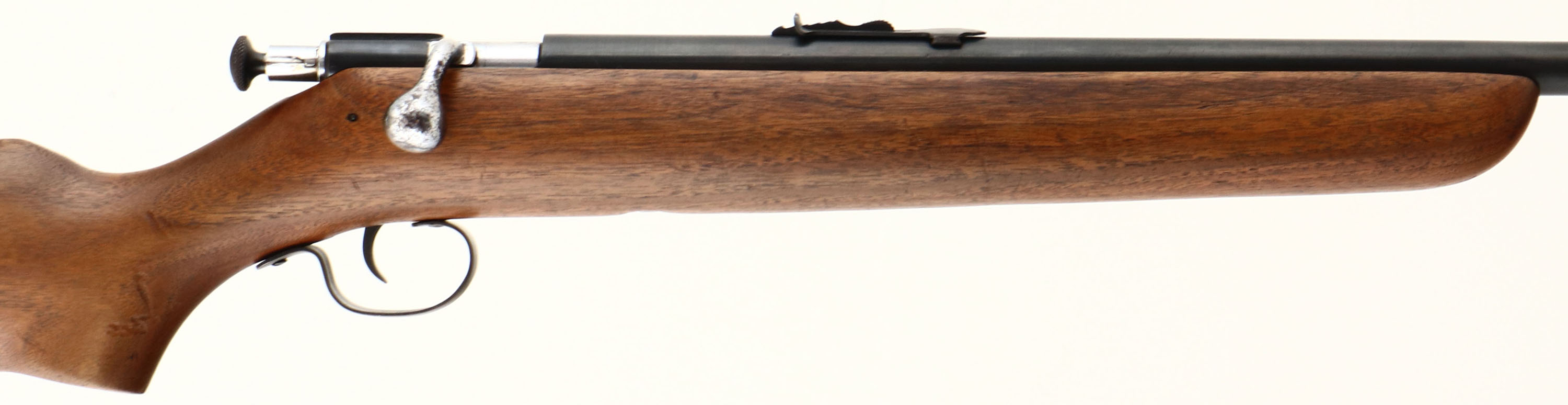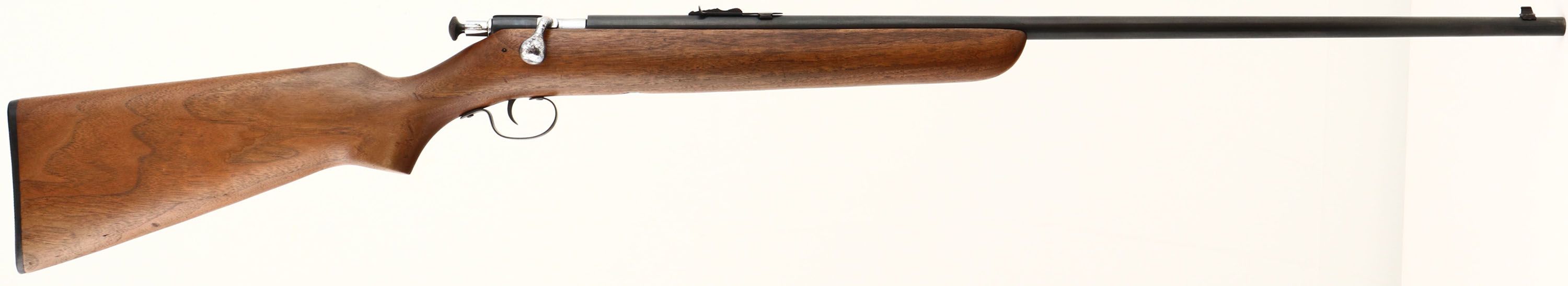 VERY RARE Winchester, Model 67 SMOOTH BORE, 3rd Issue, .22 SHORT, LONG AND LONG RIFLE Cal., MFG. 1937-63, SN: None, Take-down Bolt Action Rifle, 27'' Tapered round barrel, Sporting model, Marked ''SMOOTH BORE'' on left side of barrel. This 3rd issue rifle has the factory heavier (no groove), flat pistol grip stock, with the tapered forend, slanted forend tip, flush take-down screw, blued trigger & the earlier chamber marking. The factory flat pistol grip wood stock is excellent, with several small contusions & light handling marks. The flat of the pistol grip is stamped inside an oval ''MACPHERSON''S STORES INVERNESS'', which was a sporting good store & staple on Inglis Street, Inverness Nova Scotia from the early part of the 20th century until its closure in the mid 70's. The metal finish on the barrel has been professionally restored to 98% overall, with small areas of speckled pitting under blue. Bore is excellent. Mounted with original factory sights. Winchester plastic buttplate. A rare smooth bore example & in excellent condition. FFL or C&R Req. - Value: 500 to 1000