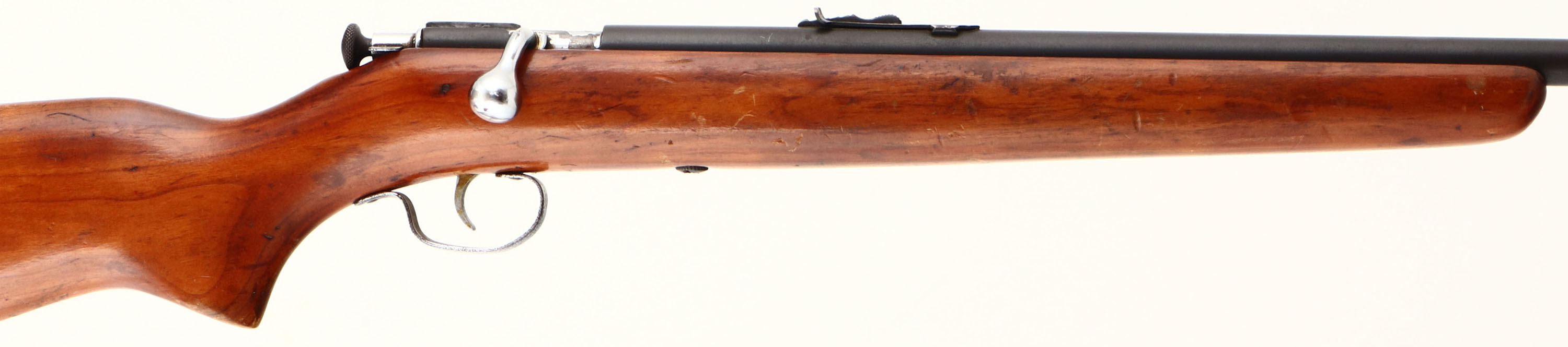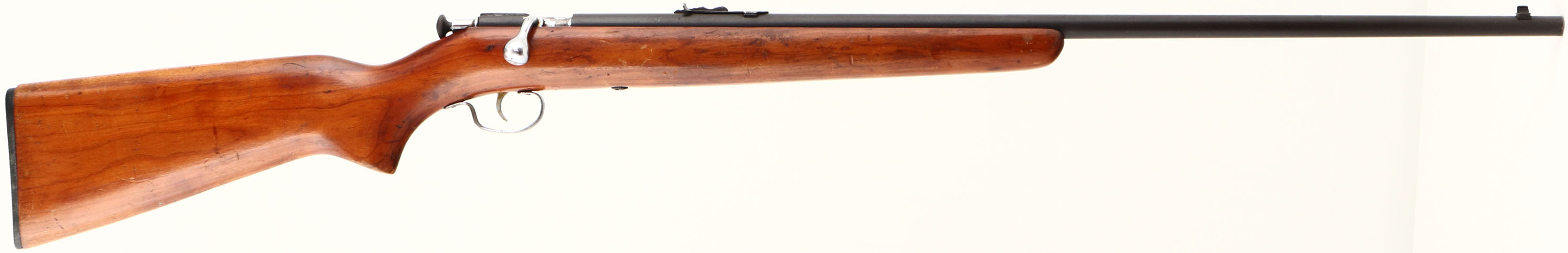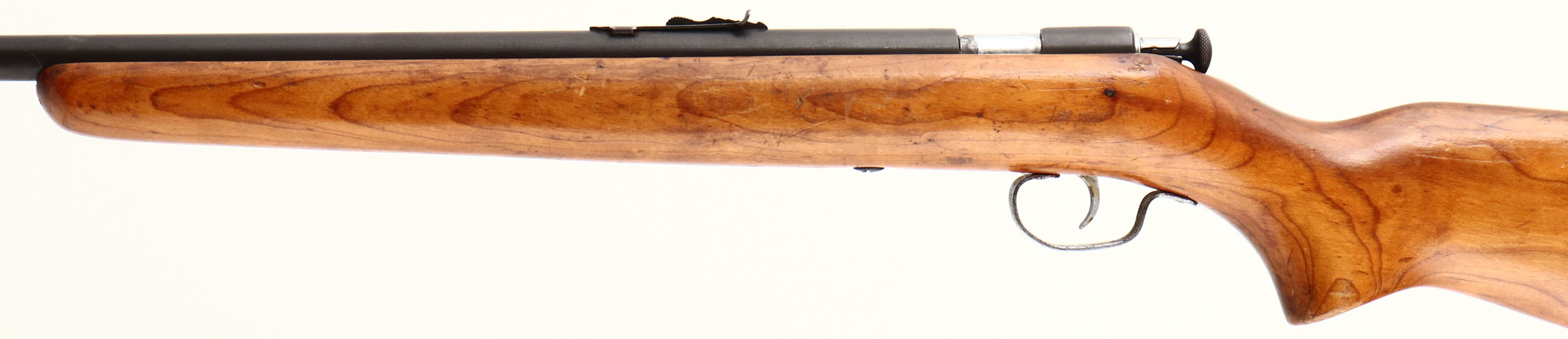 Winchester, Model 67A Sporting, CAL: 22 S.L. or LR, MFG: 1934-63, SN: N/A, Bolt Action Rifle, 27 1/8'' Tapered barrel. The flat pistol grip wood stock is very good, with an older refinish which now also displays numerous small scratches & contusions. The metal blue finish rates 60% overall, toning to a gray/brown. The barrel holds an adjustable rear & front blade sight. Bore is very good. Buttstock carries a Winchester checkered black plastic buttplate. Should be a good shooting vintage example. FFL or C&R Req. - Value: 200 to 400