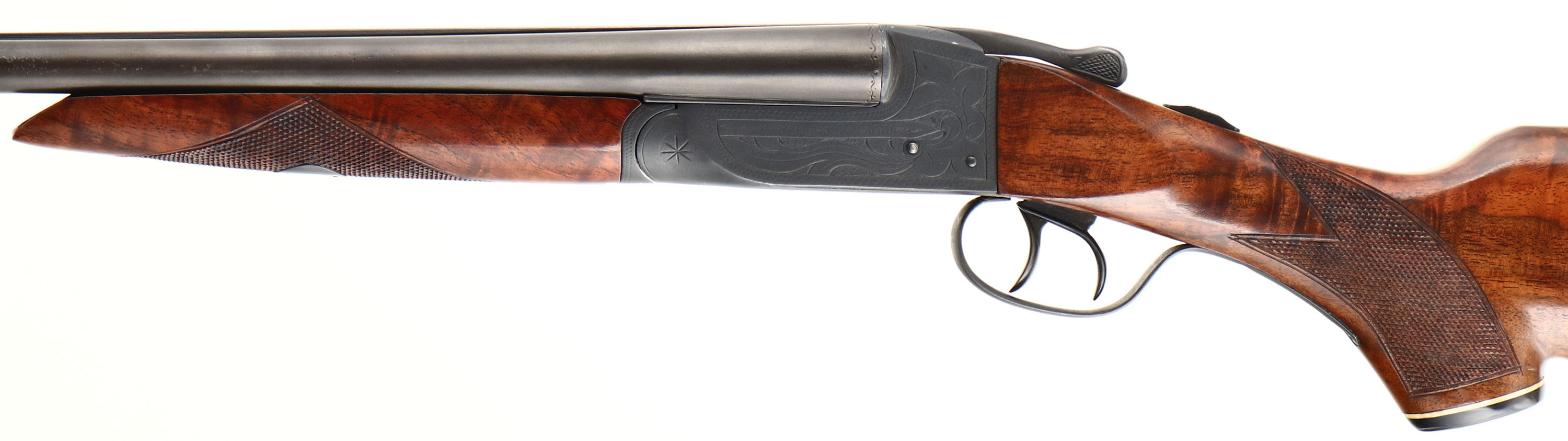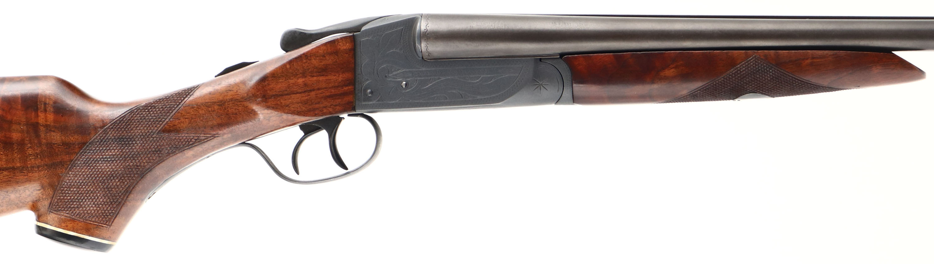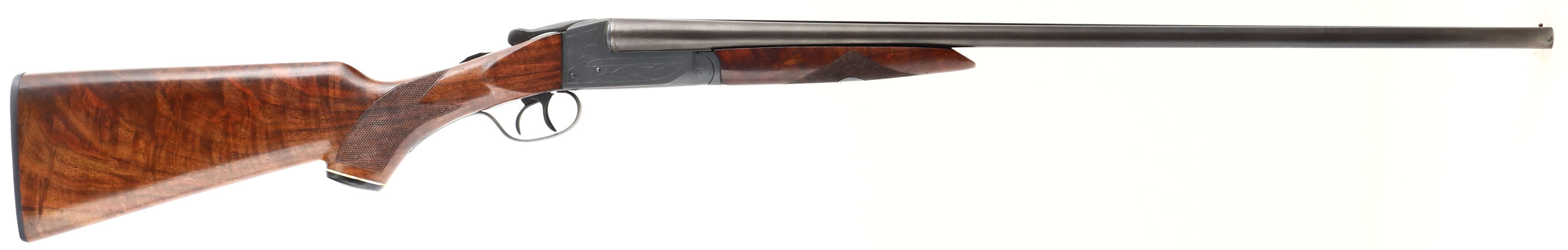 Ithaca, Grade 1 Flues Model, CAL: 28 GA, MFG: 1919, SN: 310450, Break Action SxS Shotgun, 26'' barrels. This gun has been fully & nicely refinished. The checkered & capped pistol grip wood stock & forend are excellent, with minor handling marks. The refinish has exposed a beautiful rippled & cross tiger striped grain. The finish is very good. The refinished satin black metal finish on the barrels rates 90%, with spotting & thinning. The matte black finish on the receiver rates 97%, with a couple minor scuffs & blemishes. Bores are excellent, with light wear. The solid rib holds a single front bead. Buttstock carries an Ithaca checkered black plastic buttplate, with slight oversized fit issues. Double triggers. FFL or C&R Req. - Value: 300 to 600