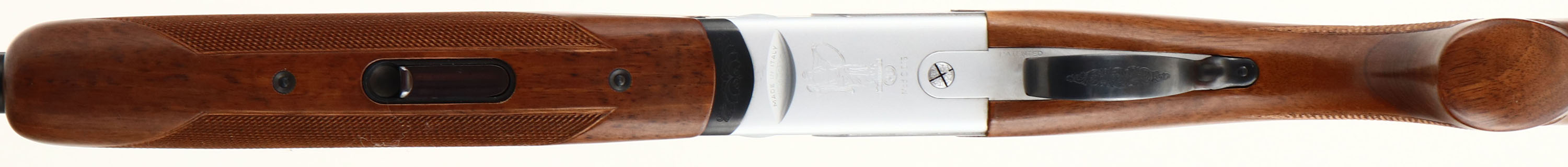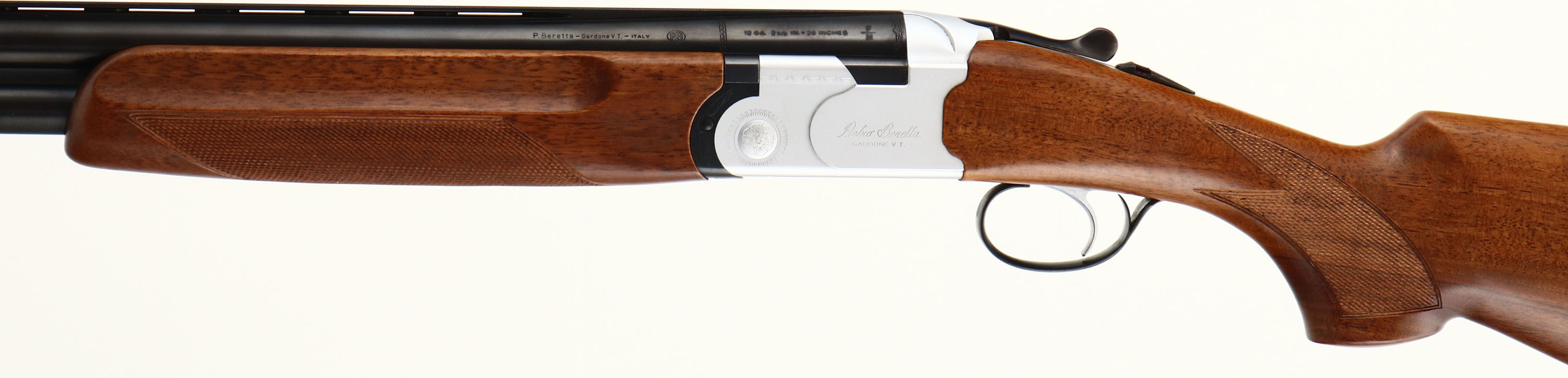 Beretta, Model S685, CAL: 12GA, MFG: Modern, SN: C74033B, Break Action O/U Shotgun, Choke: F/MOD, 2 3/4'', 28'' Ventilated barrels. The original checkered & flat pistol grip wood stock is excellent, near mint. The metal blue finish on the barrels rates 99% & the satin silver finish on the receiver is excellent. The receiver & trigger guard display simple, yet attractive engravings. Bores are excellent, near mint. The rib holds a single front bead. Buttstock carries a Beretta buttplate. Front & back sling loops. This newer production Beretta is near mint & appears to have been used very little, if at all. FFL Req. - Value: 700 to 1200