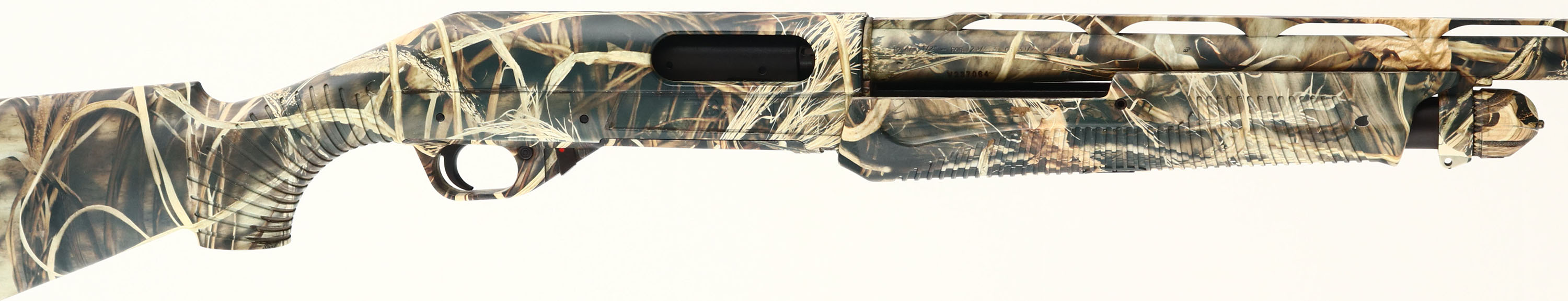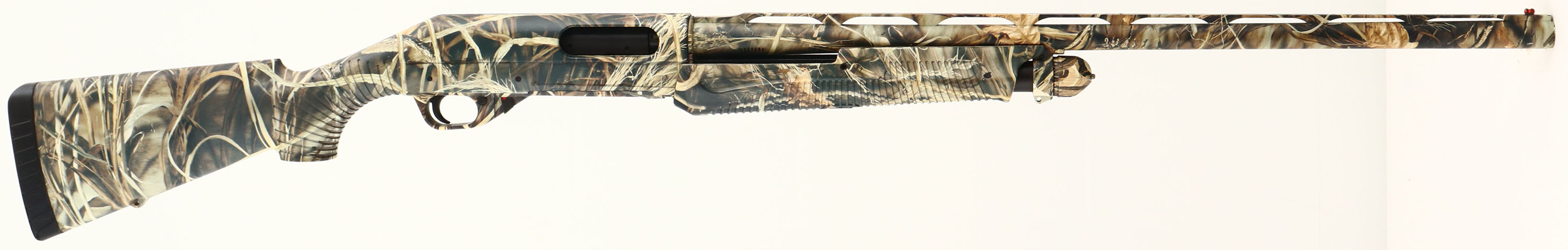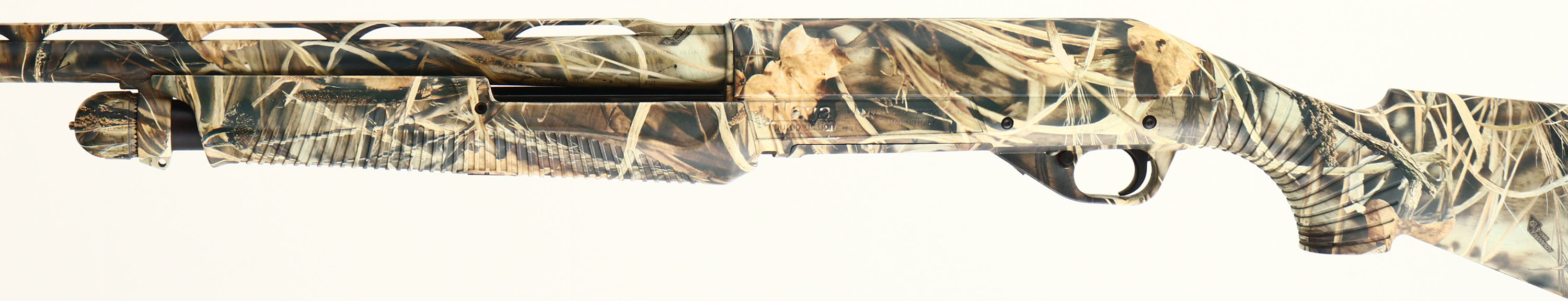 Benelli, Nova, CAL: 12 GA, MFG: Modern, SN: Z219225, Pump Action Shotgun, 27 5/8'' Ventilated barrel. The grooved high-tech polymer stocks are excellent & solid. Benelli constructs the Nova with corrosion-proof polymer over-molded on a skeleton framework to form single-piece receiver & buttstock for unsurpassed strength & weather resistance. The entire gun is covered in Realtree Advantage Max4 camo pattern & is excellent, displaying minor dings & wear from honest use. The camo finish on the barrel & receiver is excellent, displaying very minor spots of wear. Bore is excellent. The ventilated rib holds a small mid-rib steel bead & a red fiber-optic front sight. Buttstock carries a Benelli solid black recoil pad. Integral sling provisions. The Nova is an ultra reliable, nearly indestructible pump shotgun that's ideal for all-round rugged use. FFL Req. - Value: 300 to 600
