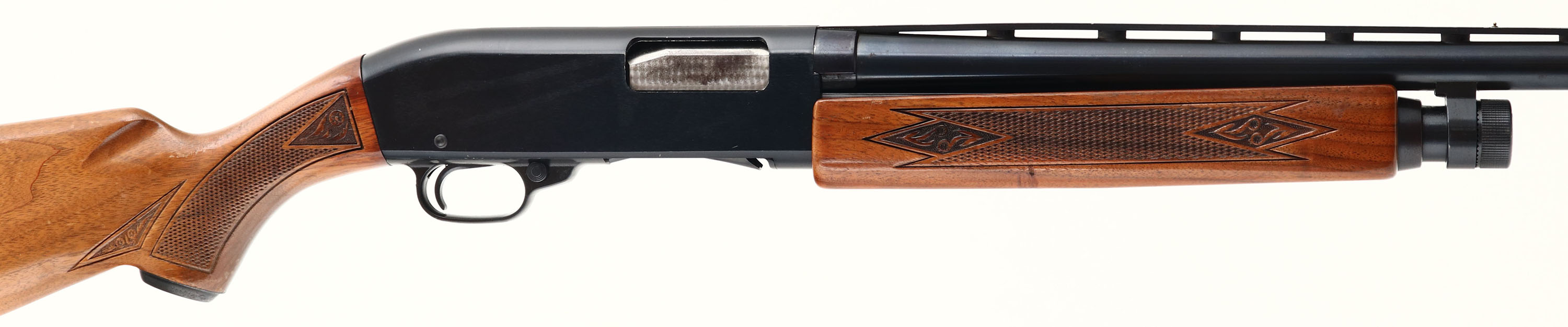 Ted Williams, Model 200, CAL: 12GA, MFG: 1964-81, SN: P311388, Pump Action Shotgun, 28'' barrel. The checkered & capped pistol grip stocks are very good, displaying minor contusions, scrapes & dings to the original finish. The metal blue finish on the barrel rates 98%, while the anodized metal finish on the receiver rates 97%, with minor blemishes. Bore is excellent, with light striations from use. The ventilated rib holds a small silver mid-rib bead & front bead. Buttstock carries a ventilated recoil pad. FFL Req. - Value: 200 to 400
