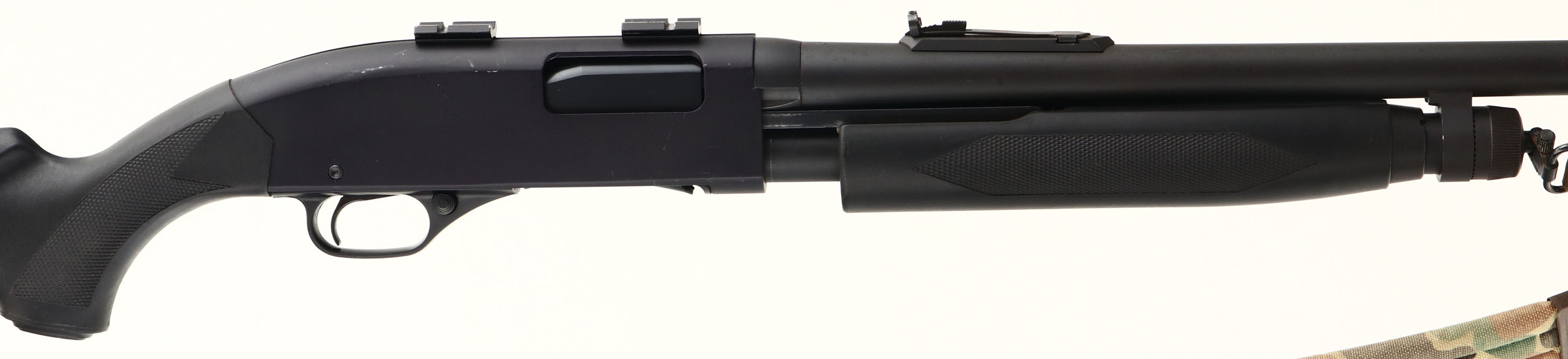 Winchester, Model 1300 Slug Gun, CAL: 12 GA SLUG, MFG: 1978-2006, SN: L3416595, Pump Action Shotgun, 22'' barrel. The checkered, capped pistol grip synthetic stocks are excellent, displaying a couple of minor scratches & dings. The matte black metal finishes rates 95% overall. Bore is excellent. The barrel holds an adjustable rear sight & ramped blade front sight The receiver holds a set of scope mounts. Buttstock carries a Winchester, ventilated recoil pad. Sling studs, with a camo cloth sling. FFL Req. - Value: 300 to 500